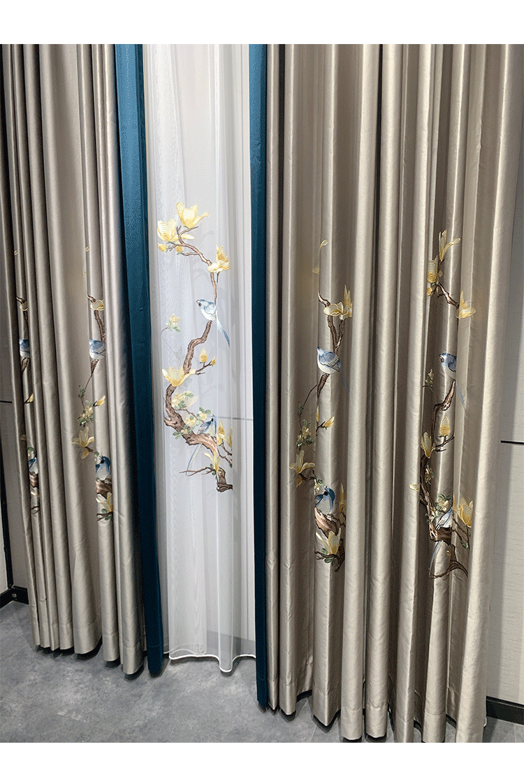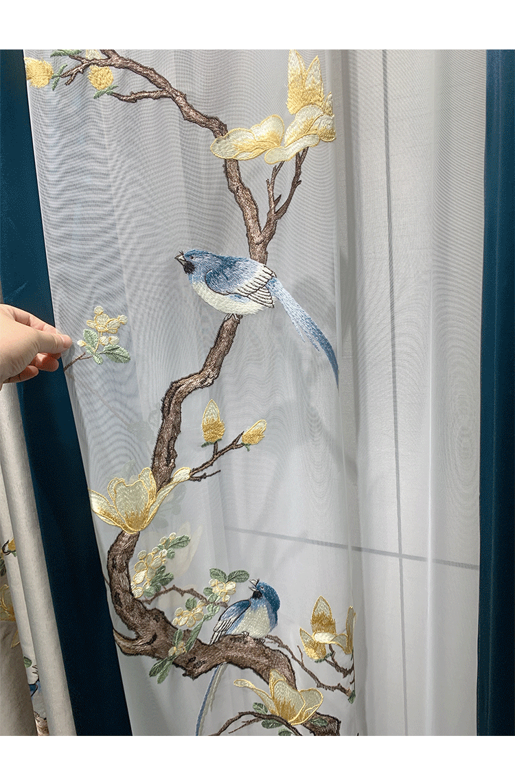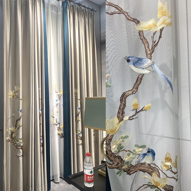 새로운 중국 커튼 음영 현대 중국 자수 중국 스타일 거실 침실 창 화면 새로운 천 재고 도매스토어 가기