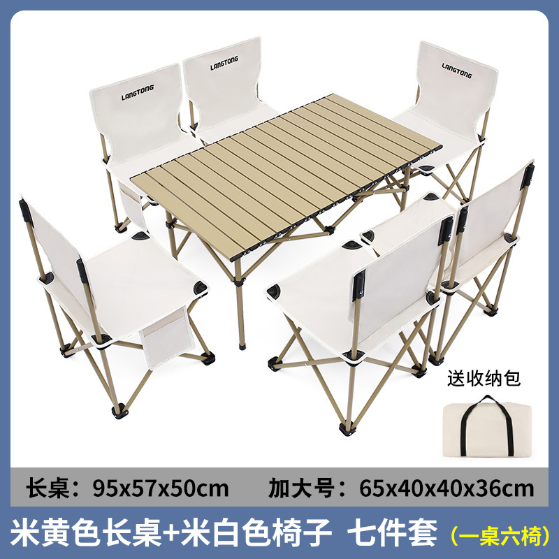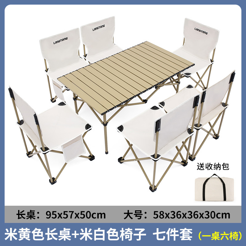 가족 식사용 긴 테이블 접이식 의자 휴대용 캠핑 에그롤 테이블 레저 식탁 의자 야외 접이식 테이블 의자 세트