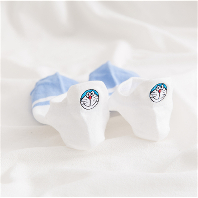 양말 여성용 여름 얇은 딩당 고양이 발 뒤꿈치 수 놓은 짧은 양말 일본식 귀여운 만화 보이지 않는 도라에몽 보트 양말스토어 가기