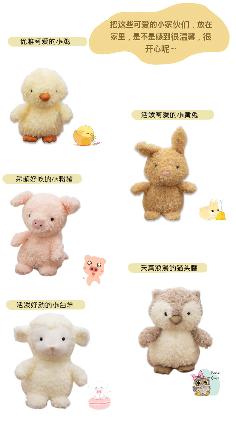 귀여운 시뮬레이션 동물 닭 토끼 올빼미 돼지 양 작은 인형 어린이 인형 봉제 인형 귀여운스토어 가기