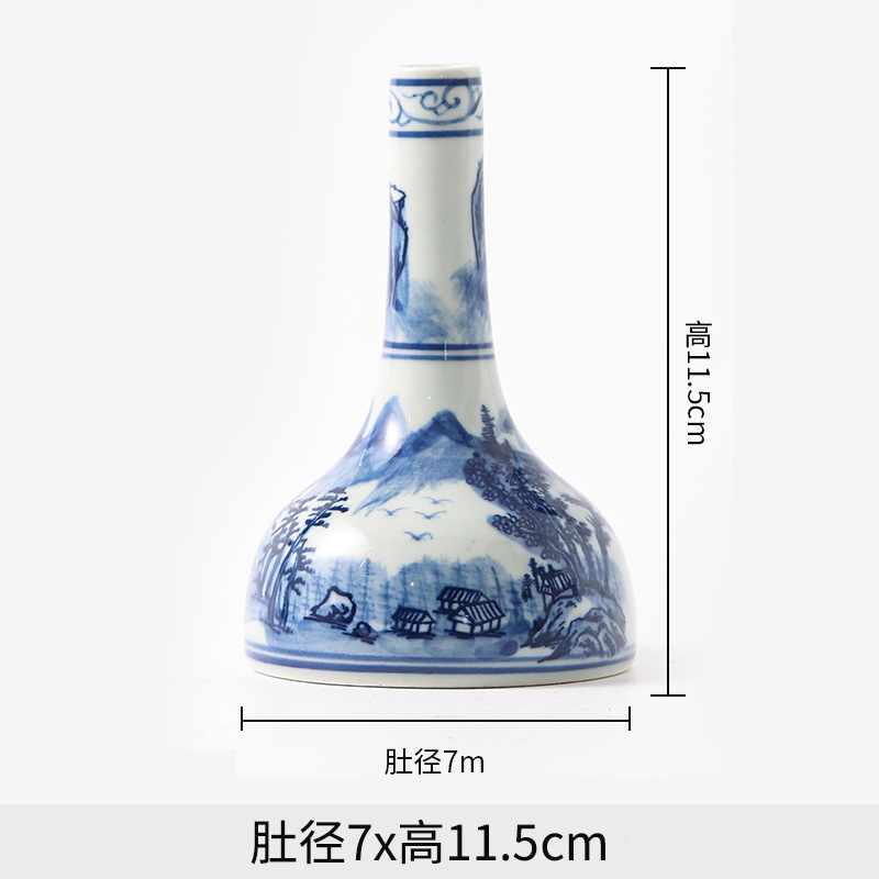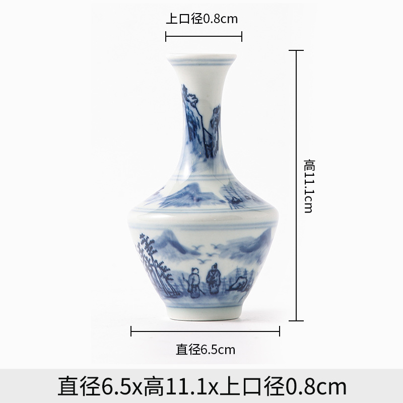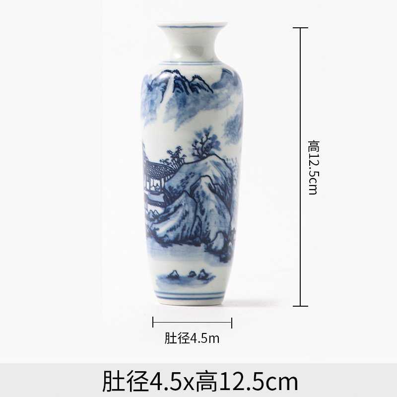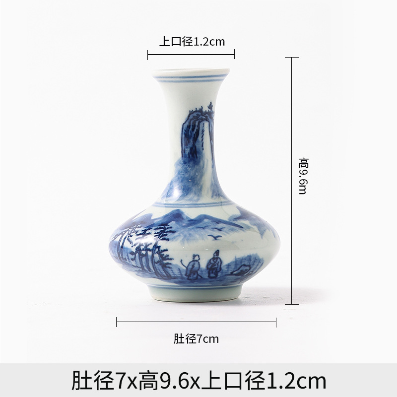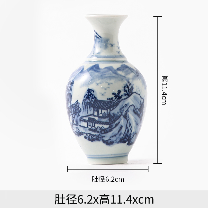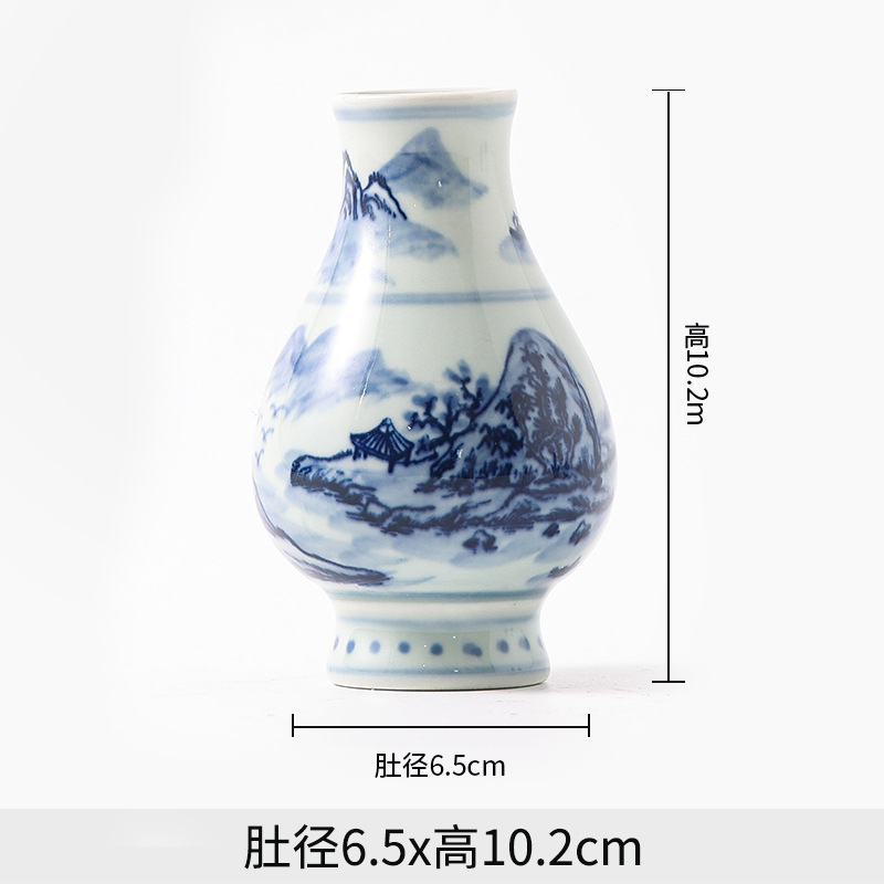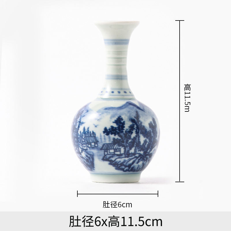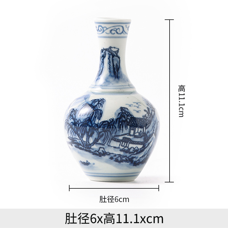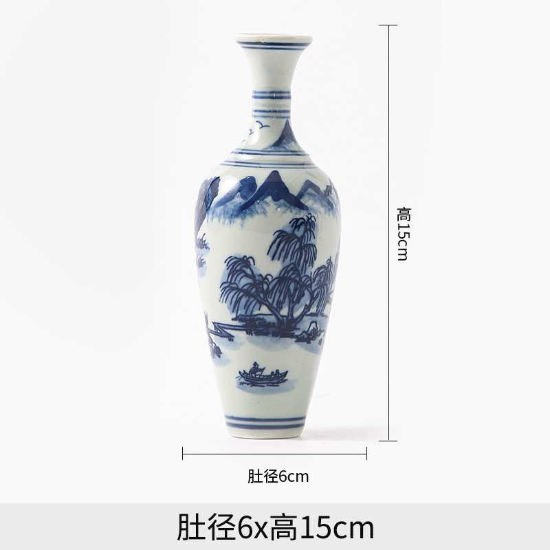 Jingdezhen 파란색과 흰색 도자기 손으로 그린 세라믹 꽃병 골동품 랙 미니 꽃병 작은 말린 꽃 가정 장식 장식품