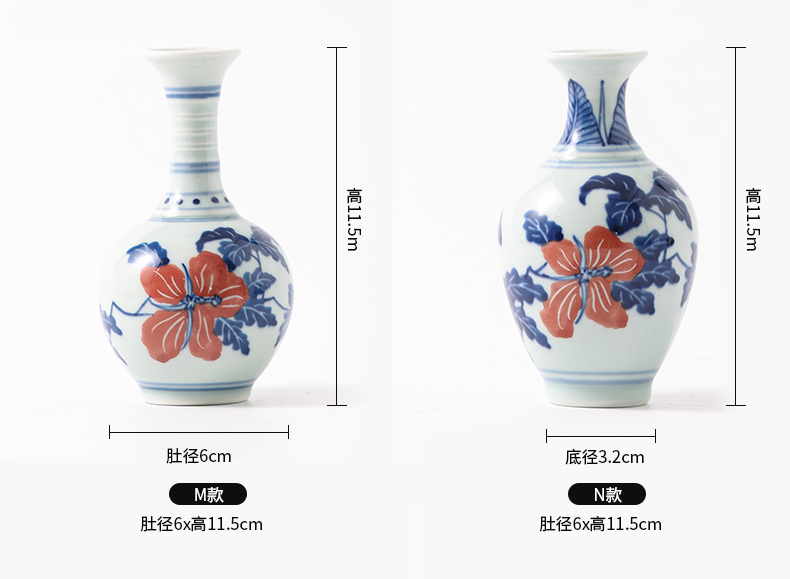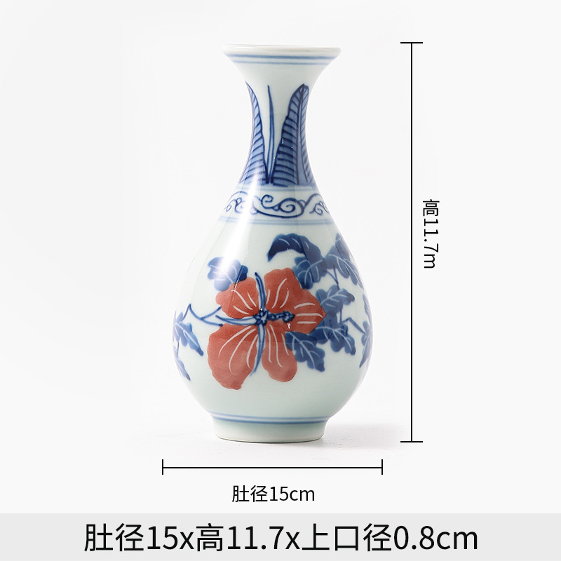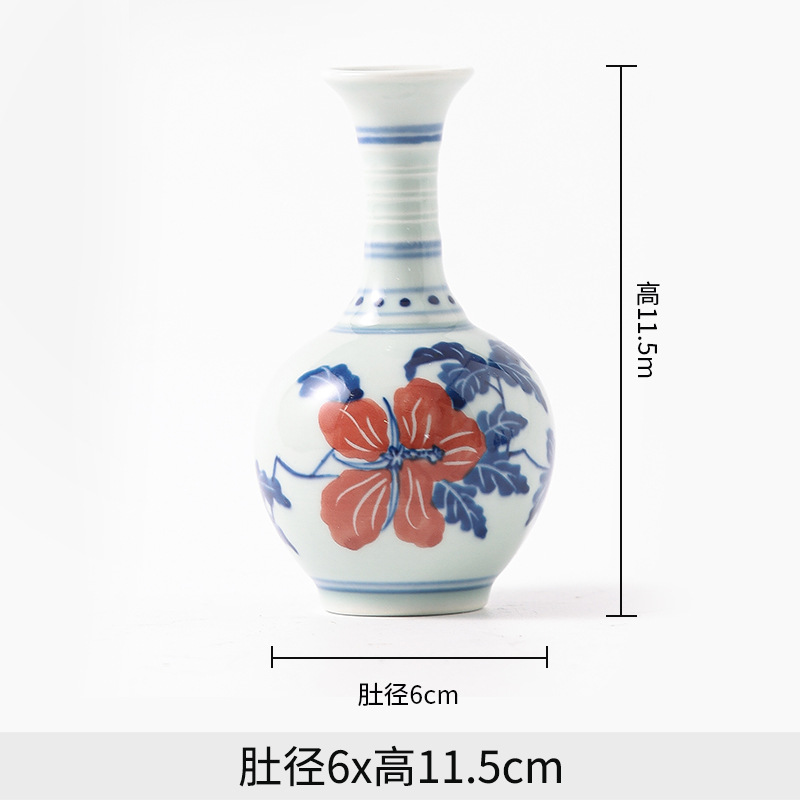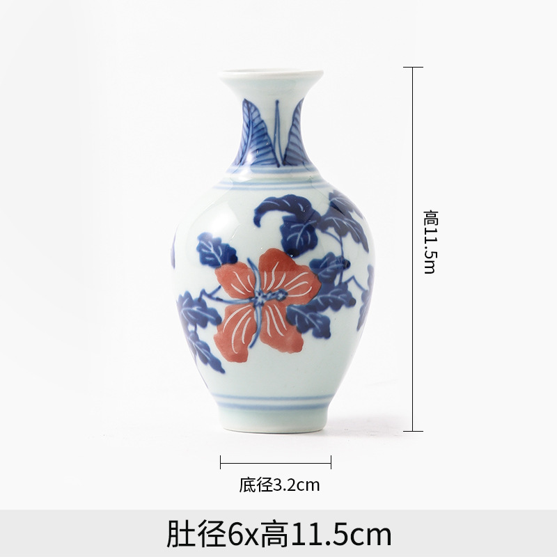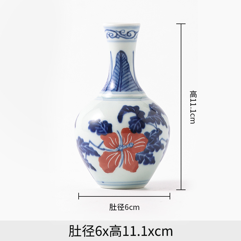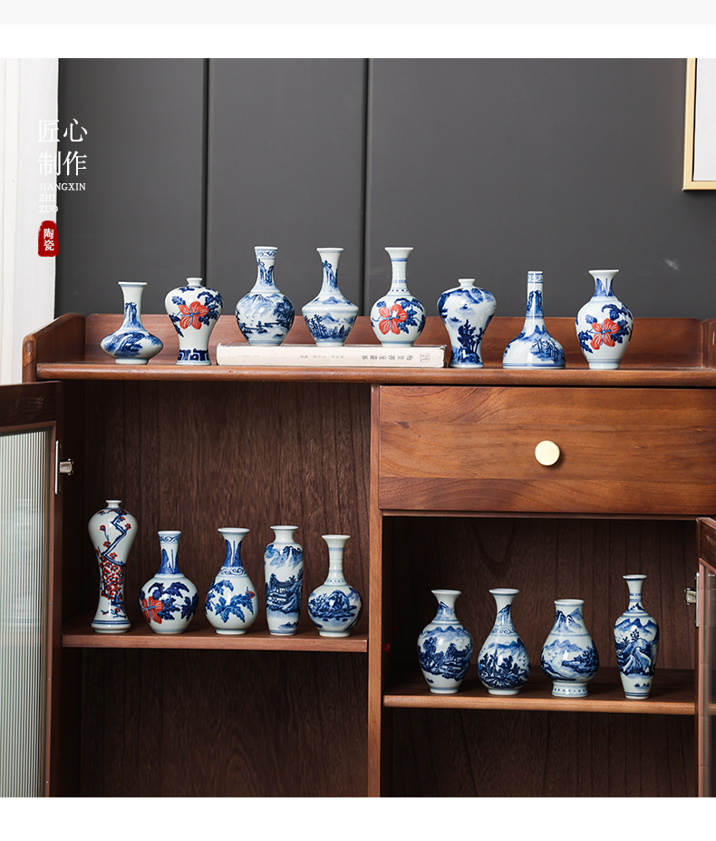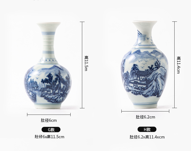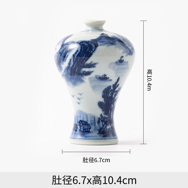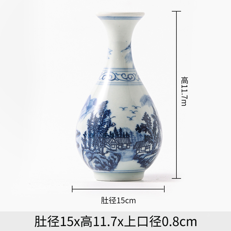 Jingdezhen 파란색과 흰색 도자기 손으로 그린 세라믹 꽃병 골동품 랙 미니 꽃병 작은 말린 꽃 가정 장식 장식품