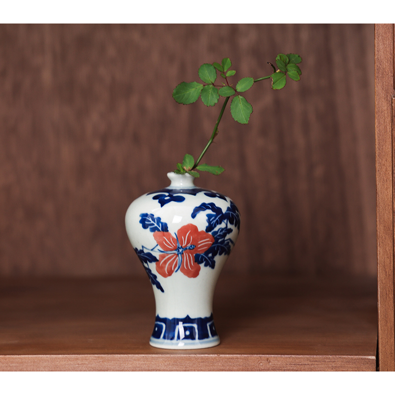 Jingdezhen 파란색과 흰색 도자기 손으로 그린 세라믹 꽃병 골동품 랙 미니 꽃병 작은 말린 꽃 가정 장식 장식품스토어 가기