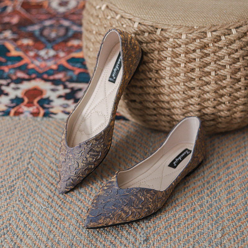 여성을위한 물떼새 격자 지적 발가락 플랫 신발 2025 새로운 기질 요정 스타일 얕은 입 슬립 온 프랑스 여성 신발 봄스토어 가기