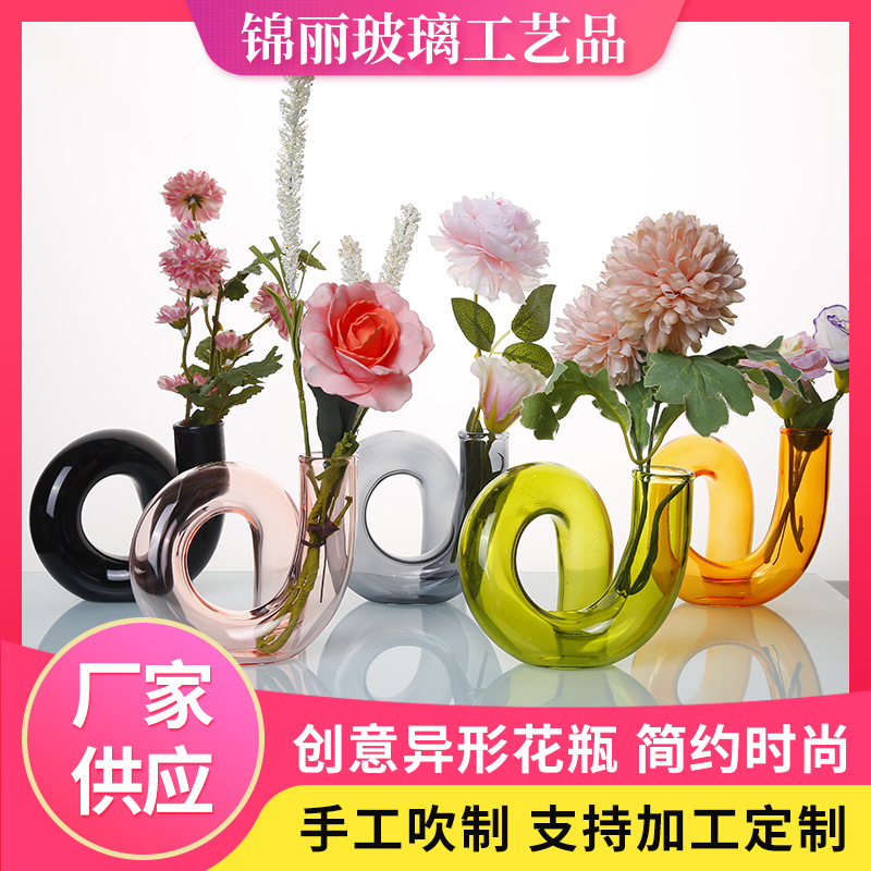 다채로운 특수 모양의 유리 창조적 인 특수 모양의 꽃병 인 스타일 투명 꽃병 꽃꽂이 촛대 거실 장식스토어 가기