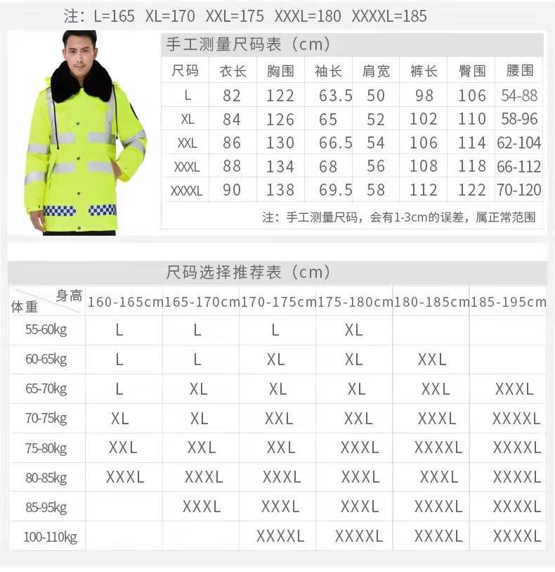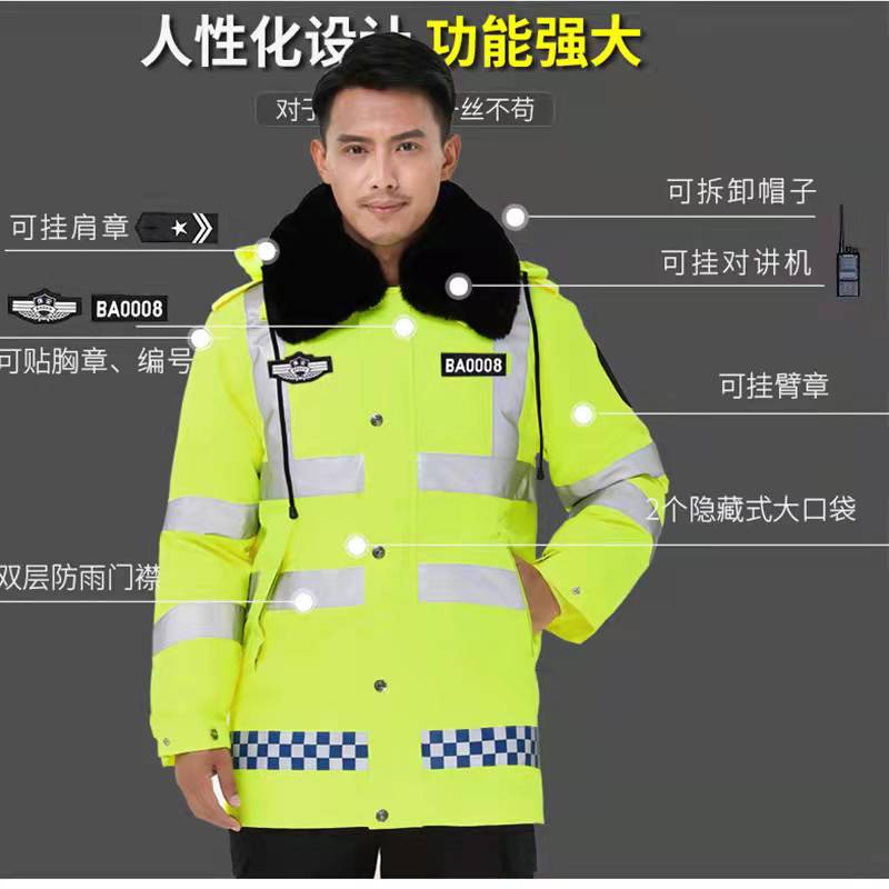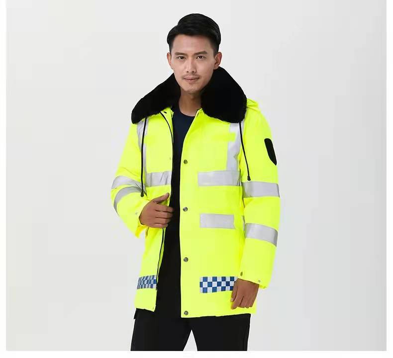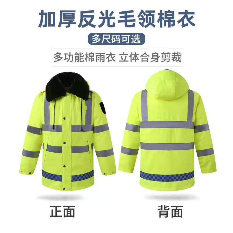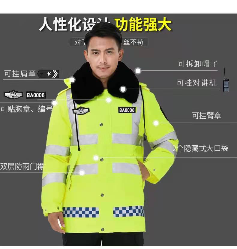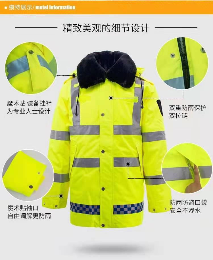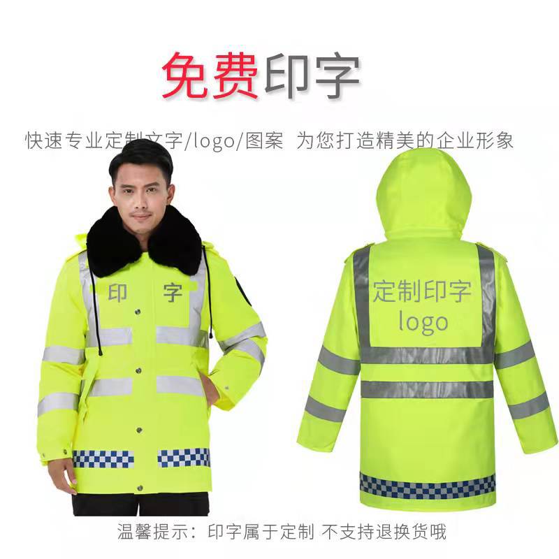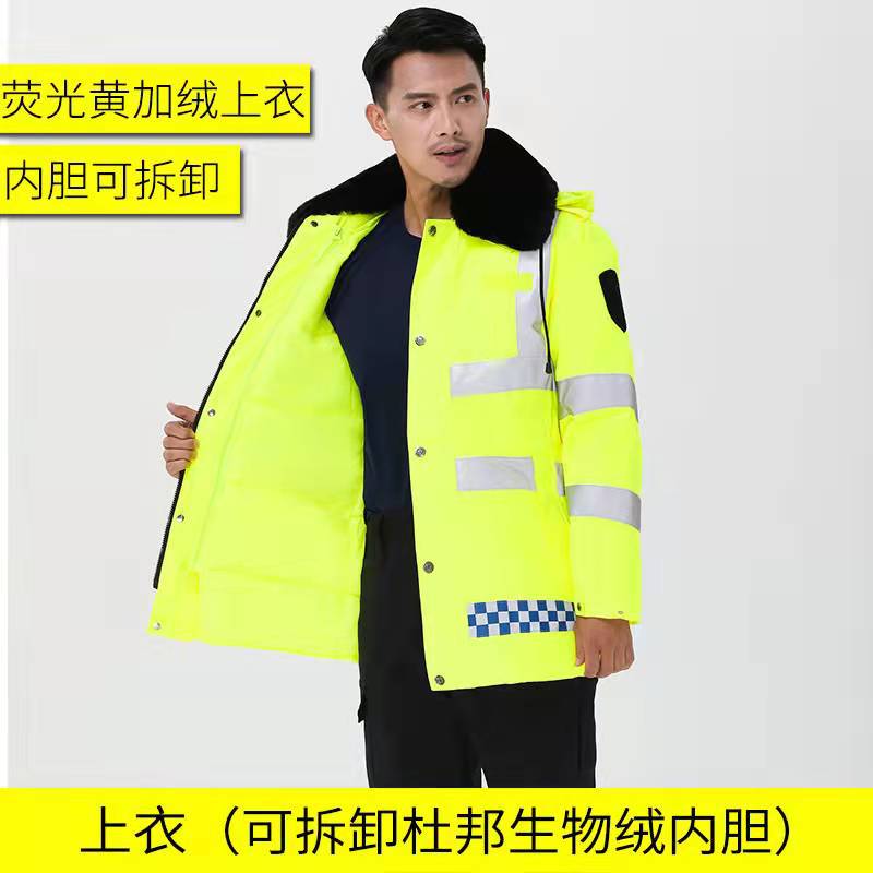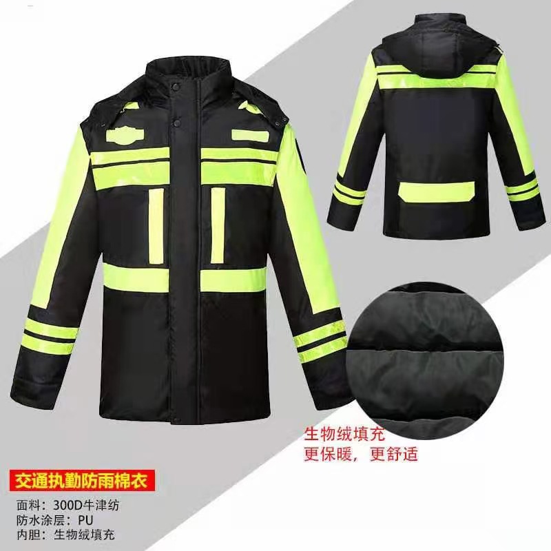 도매 반사면 패딩 코트 비옷 순찰과 벨벳 세트 안전 비 방지 의류 냉장 따뜻한 성인 남성 순찰 구조스토어 가기