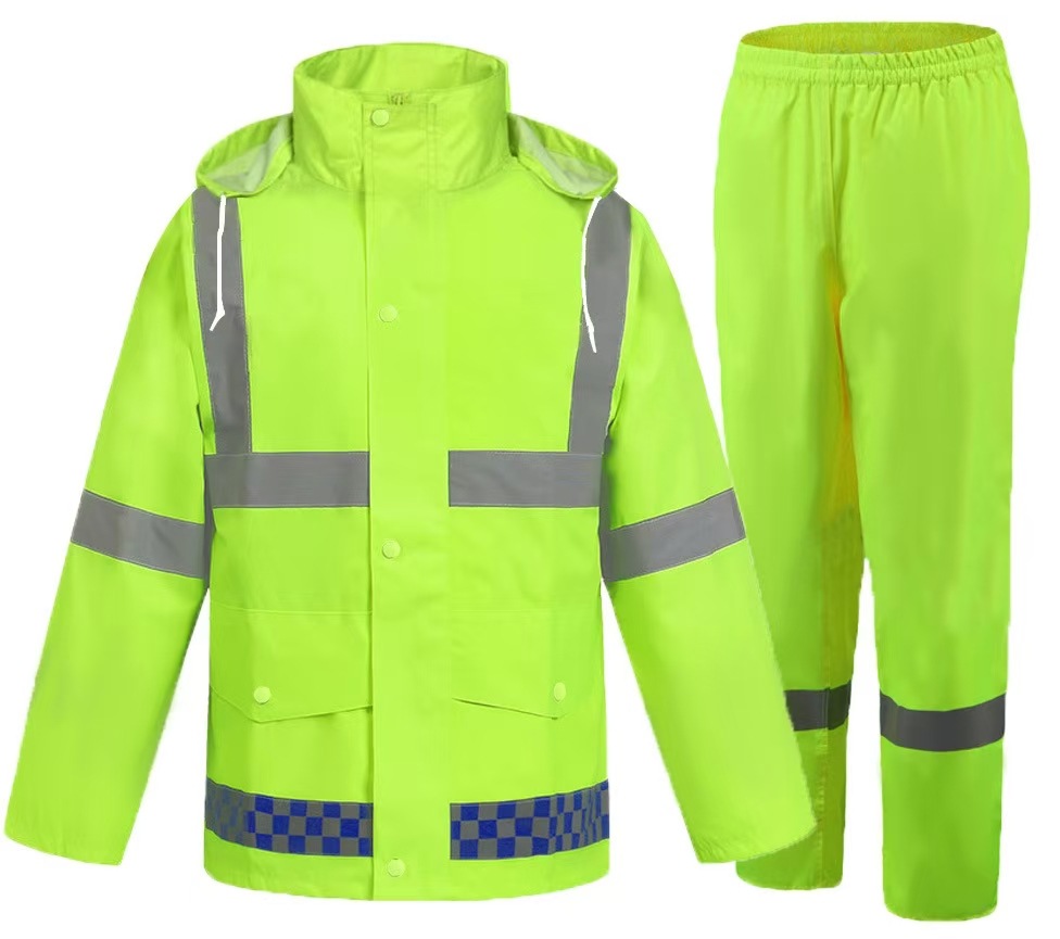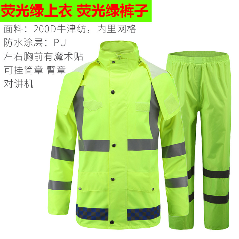 • 150D 옥스포드 천 PVC 형광 녹색 봄, 가을 비옷 및 비옷 세트