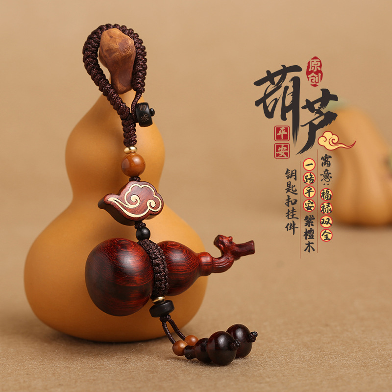하이 엔드 작은 잎 로즈 우드 조롱박 키 체인 펜던트 자동차 안전 키 체인 나무 조각 가방 펜던트 남성과 여성