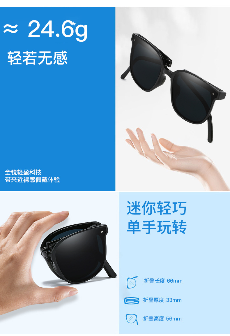 새로운 2 세대 접는 선글라스 여성의 TAC 편광 선글라스 실리콘 코 패어 항 UV Ins 눈스토어 가기