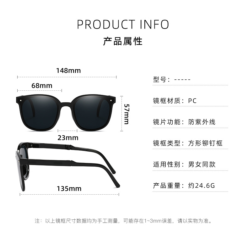 새로운 2 세대 접는 선글라스 여성의 TAC 편광 선글라스 실리콘 코 패어 항 UV Ins 눈