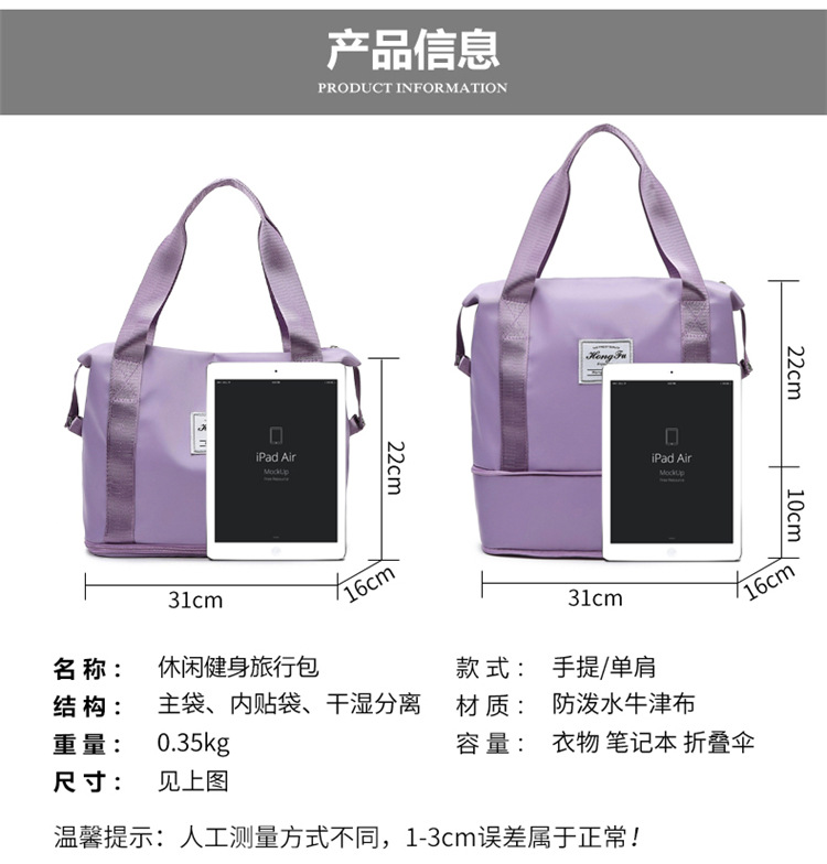 체육관 가방 여자의 스몰 사이즈 확장 건조 및 습식 분리 수하물 가방 옥스포드 천 가벼운 캐주얼 핸드백 공장 도매