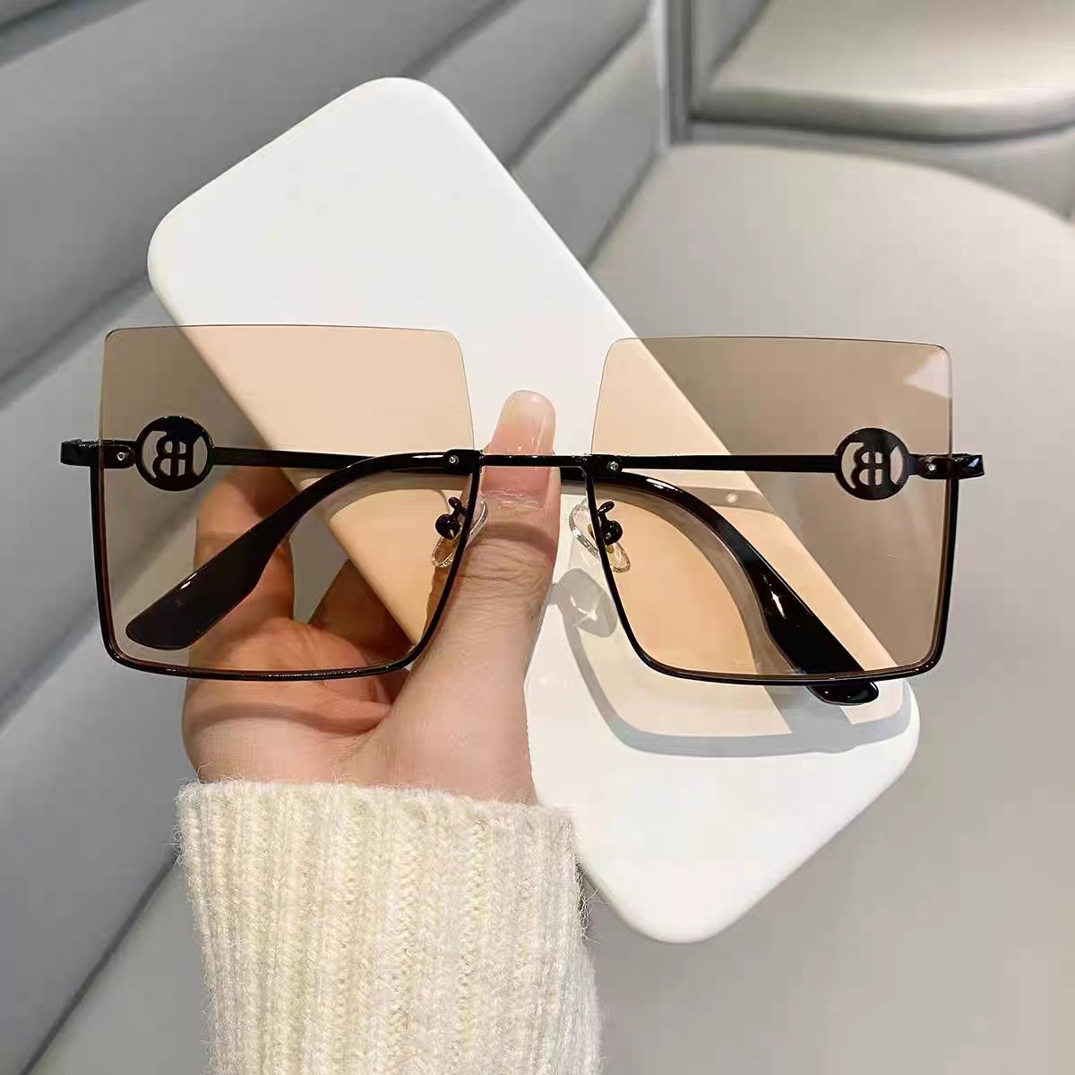 새로운 패션 대형 금속 프레임 여성 차양 선글라스에서 사이버 연예인 광장 복고풍 일반 착용 선글라스스토어 가기