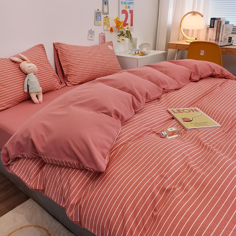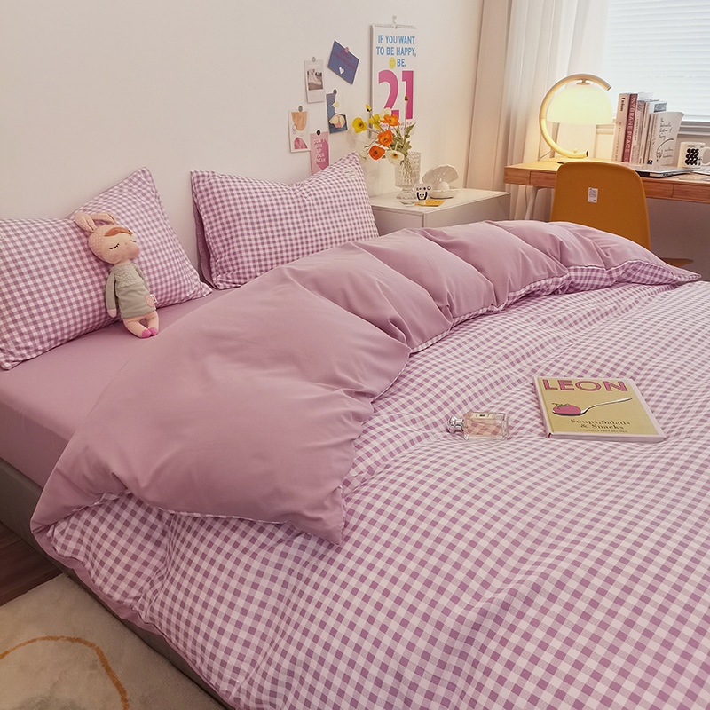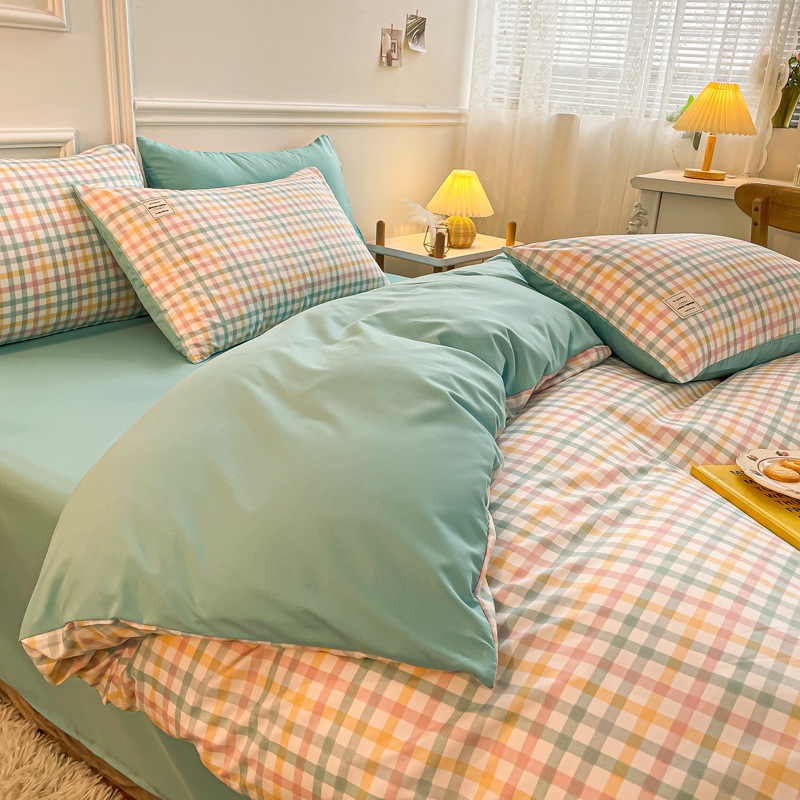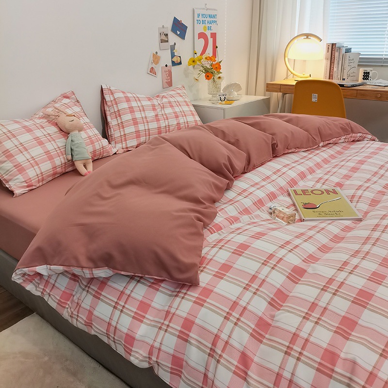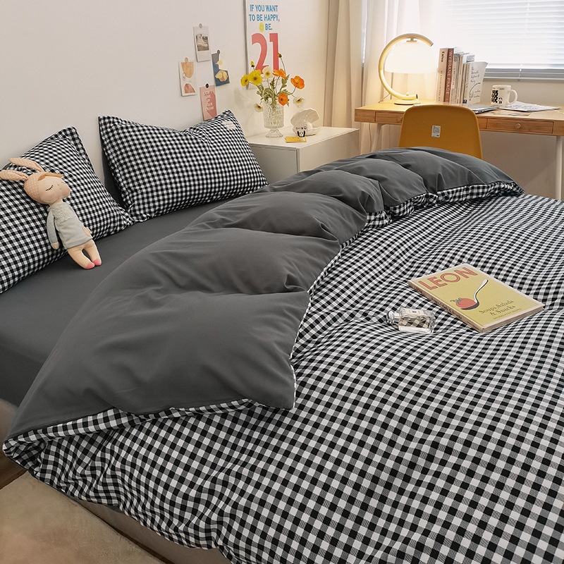 일본 좋은 상품 4 종 세트 격자 무늬 침대 모자 세척 면 3 종 세트 학생 기숙사 침대 시트 이불 커버 침구