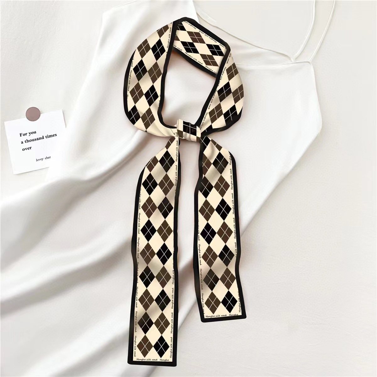 선물 스카프 새로운 모조 실크 격자 무늬 리본 한국 새틴 긴 프랑스 물방울 무늬 녹색 스카프 도매
