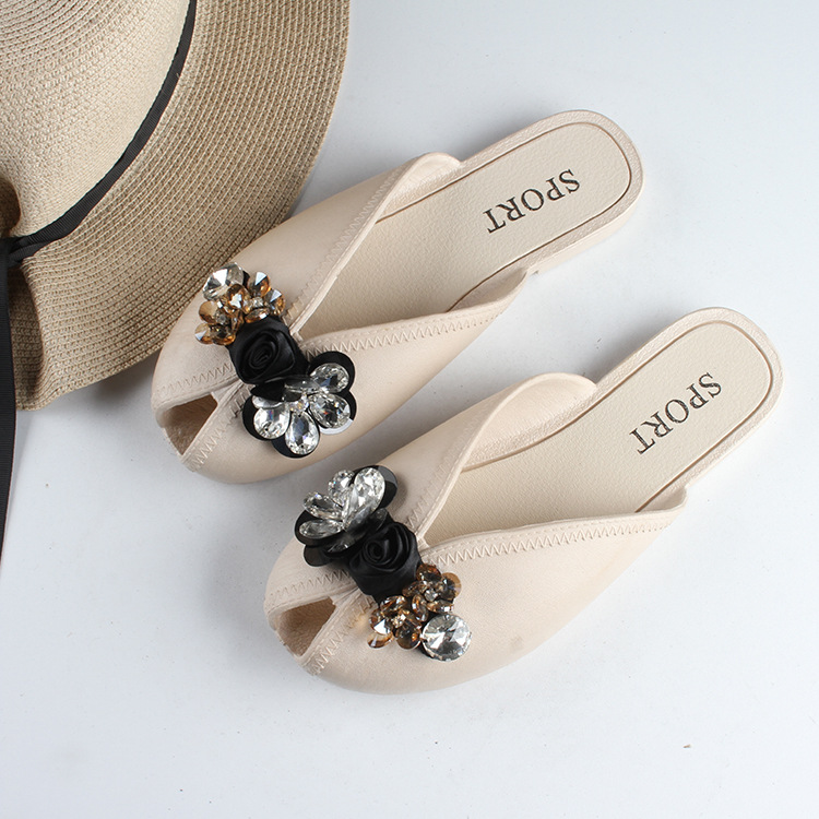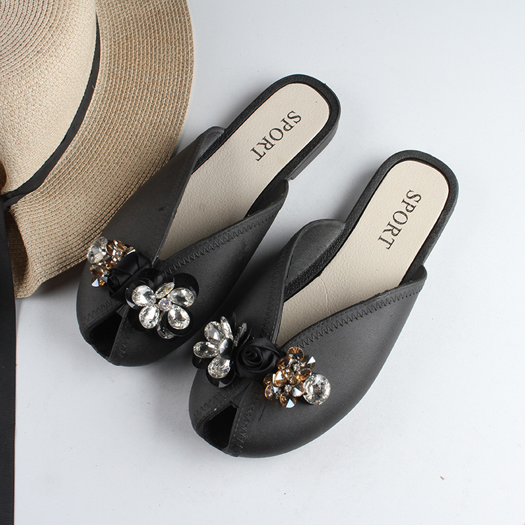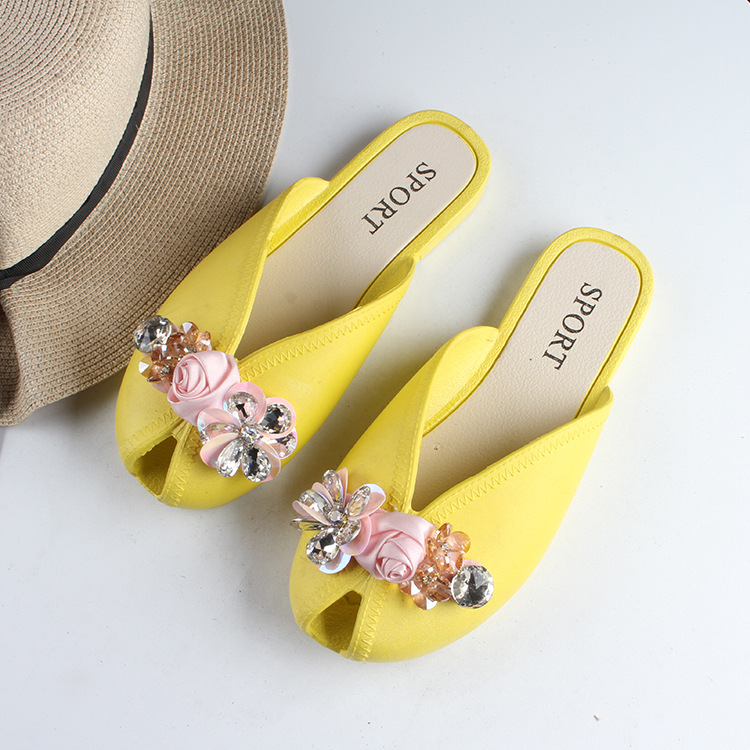 새로운 여성의 여름 발가락 반 슬리퍼 유행 단색 꽃 여성 샌들 플랫 캐주얼 아웃웨어 슬리퍼