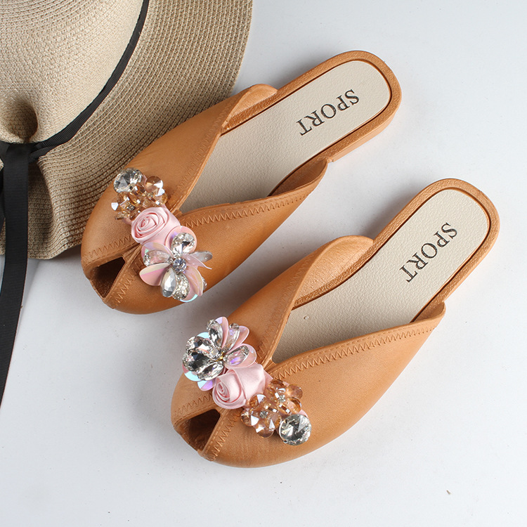 새로운 여성의 여름 발가락 반 슬리퍼 유행 단색 꽃 여성 샌들 플랫 캐주얼 아웃웨어 슬리퍼스토어 가기
