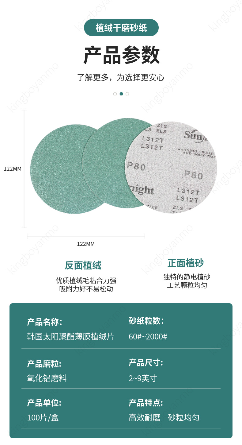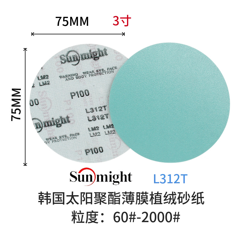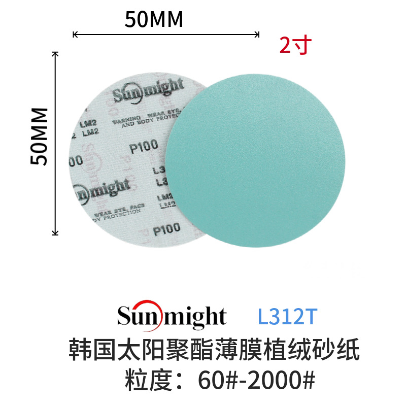 2inch 3inch 5inch 한국산 태양광 플로킹 사포 L312T 폴리에스터 필름 그린 원형 사포 Sunmight