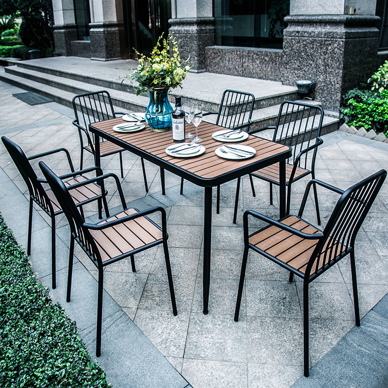 야외 테이블과 의자, 카페, 밀크티 가게, 발코니, 작은 공원, 안뜰, 야외 철제 및 플라스틱 목재 조합, 북유럽 스타일 식탁스토어 가기