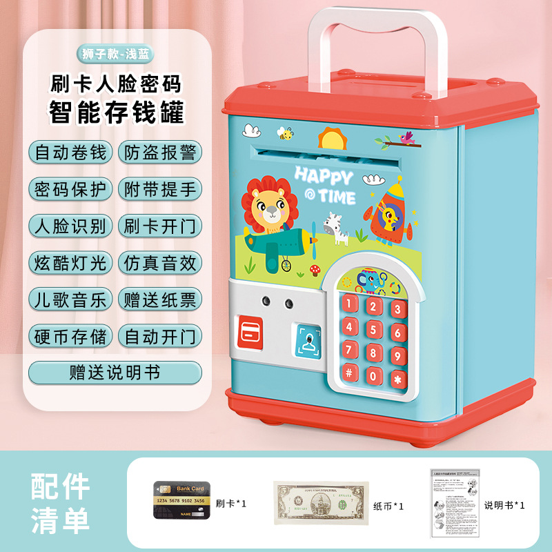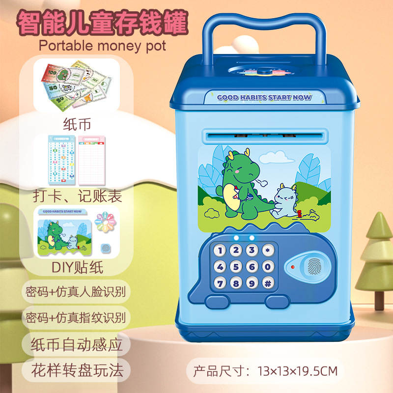 • 지문 얼굴 비밀번호 돼지 저금통 [자동 돈] Blue 6802