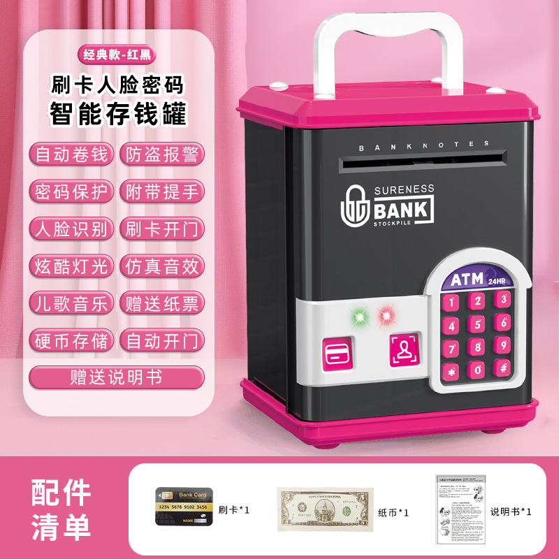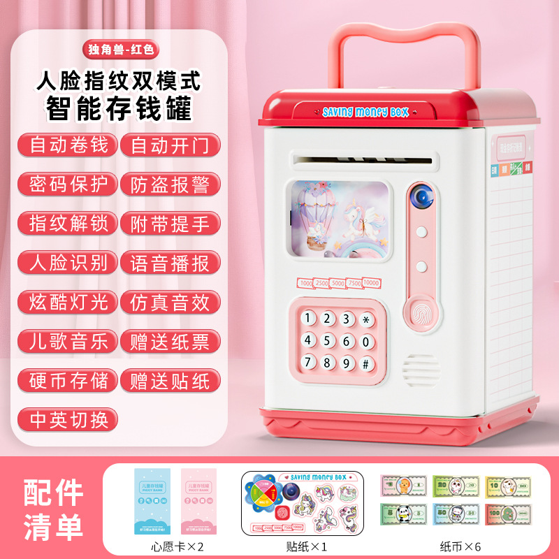 어린이 돼지 저금통 자동 유도 롤 머니 atm 대용량 시뮬레이션 지능형 전자 지문 비밀번호 박스 돼지 저금통