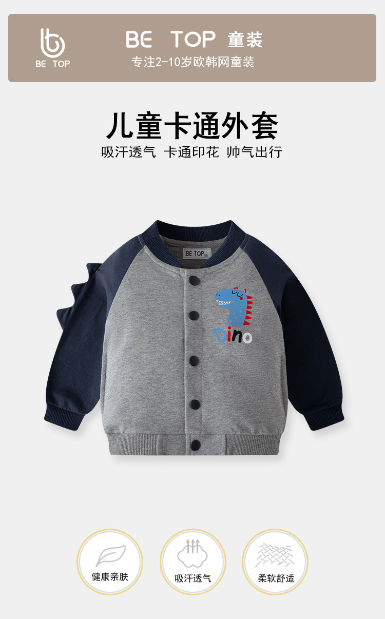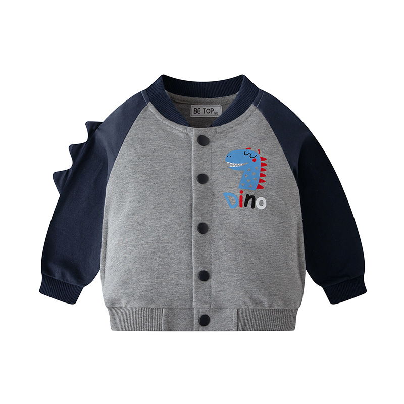 2025 어린이 가을 만화 공룡 아기 싱글 브레스트 슬리브 자켓 운동복 야구 유니폼 소년 탑 배달