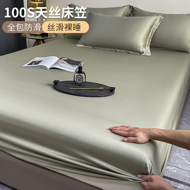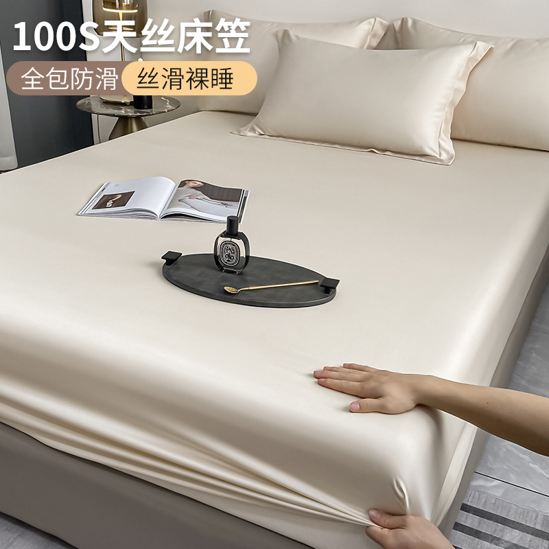 100 매 텐셀 침대 모자 싱글 피스 여름 알몸 수면 아이스 실크 침대 커버 3 종 세트 매트리스 프로텍터 커버 침대 커버 올인클루시브