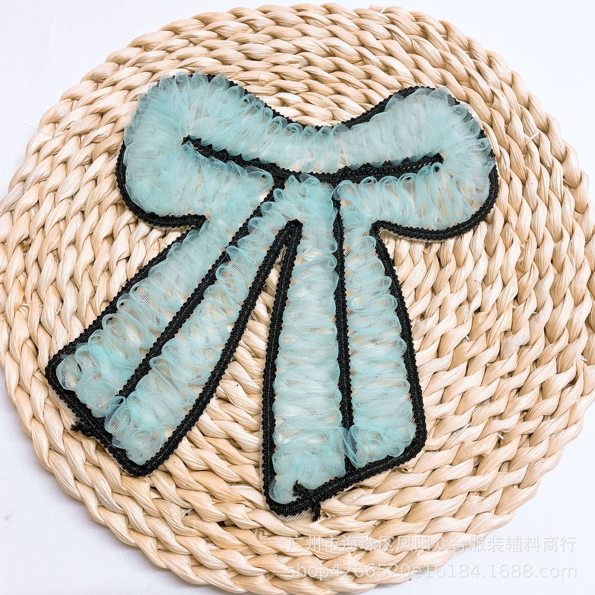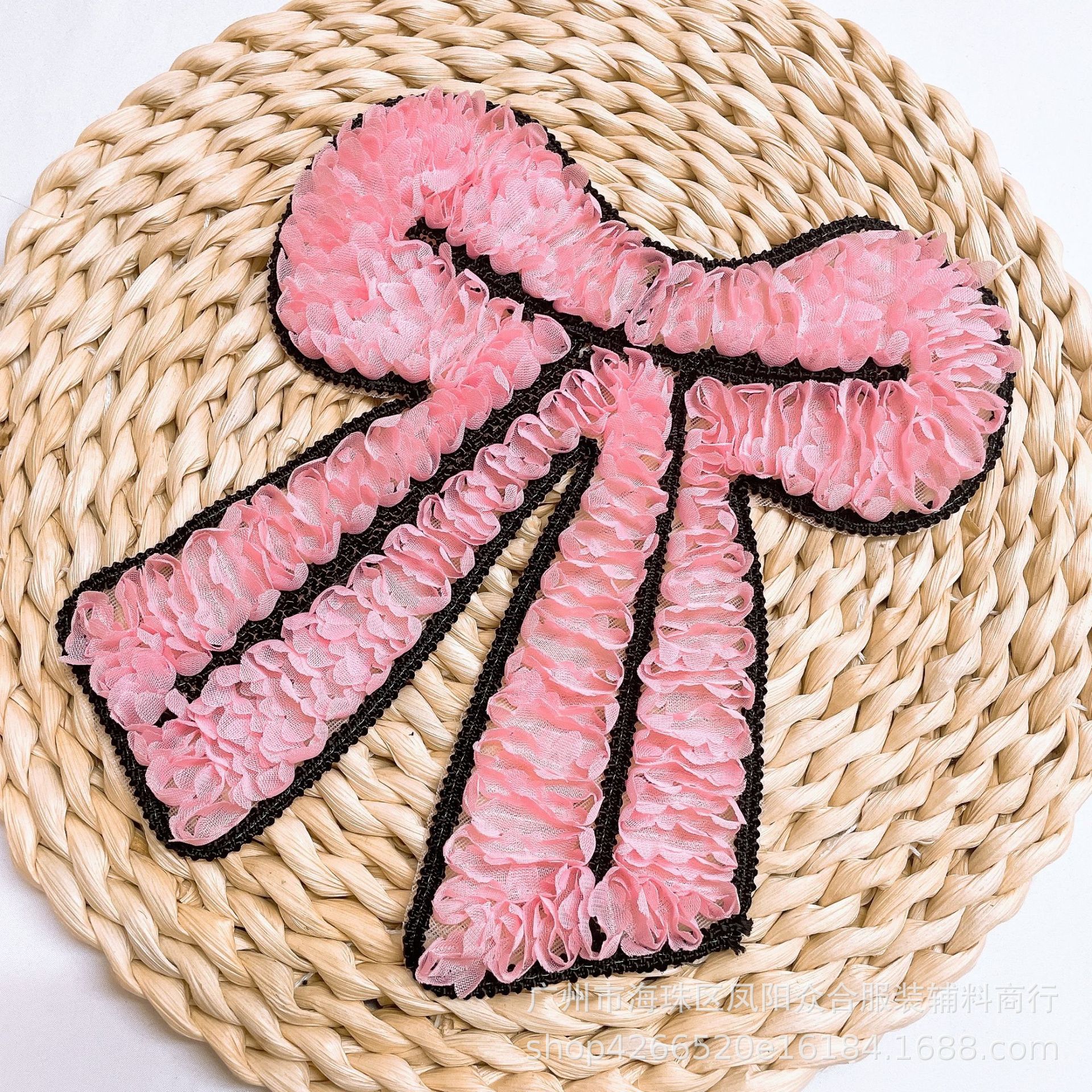 공장 직공급 쉬폰 패브릭 활 패치 아동복 액세서리 수동 쓰리인원 자수 천 패치 DIY 액세서리스토어 가기