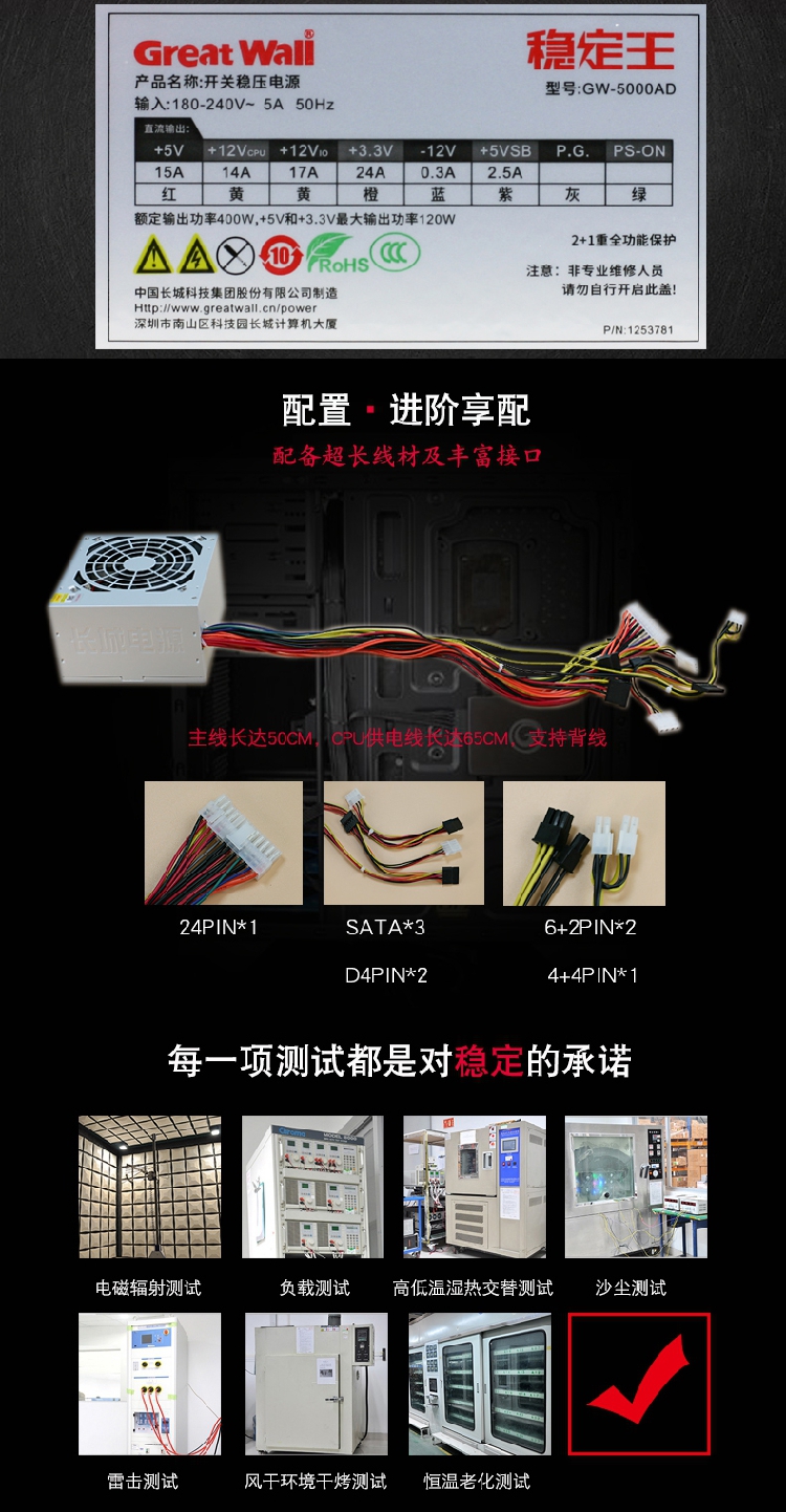 만리장성 5000AD 등급 400W 안정적인 킹 컴퓨터 호스트 전원 공급 장치 효율적인 음소거 데스크탑 호스트 전원 공급 장치 적용 가능스토어 가기
