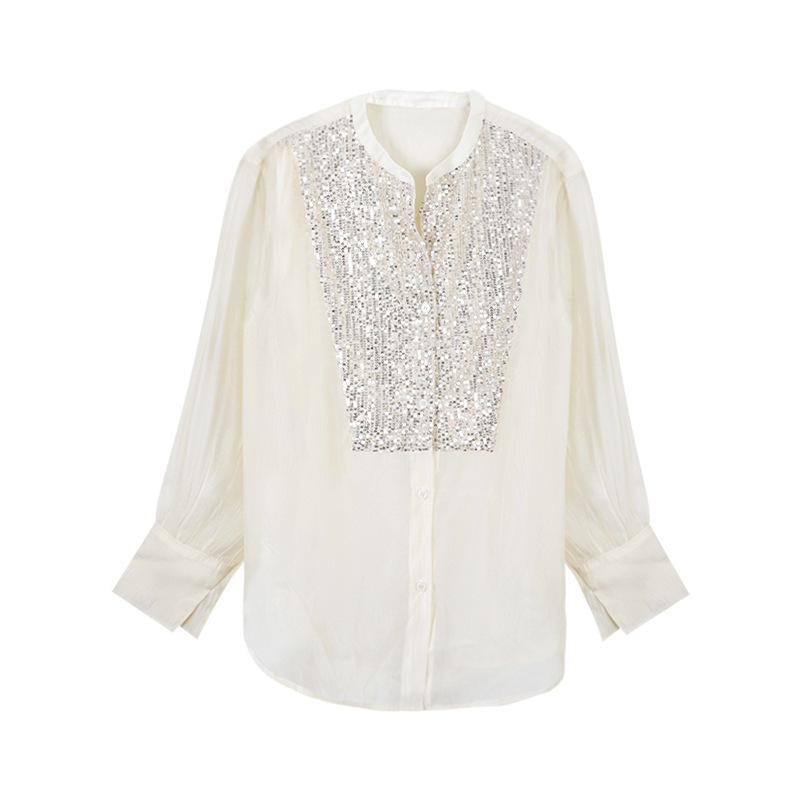 【달빛 조약돌】중공업풍 럭셔리 스팽글 스티치 셔츠 루즈핏 여성용 가볍고 고급스러운 셔츠