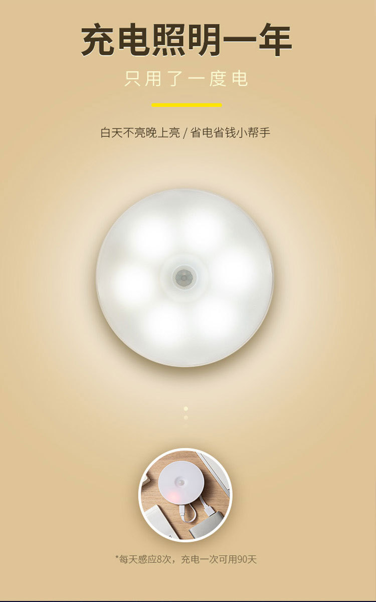 Led 인체 유도 야간 조명 스마트 홈 충전 옷장 통로 조명 무선 자기 USB 침대 옆 야간 조명