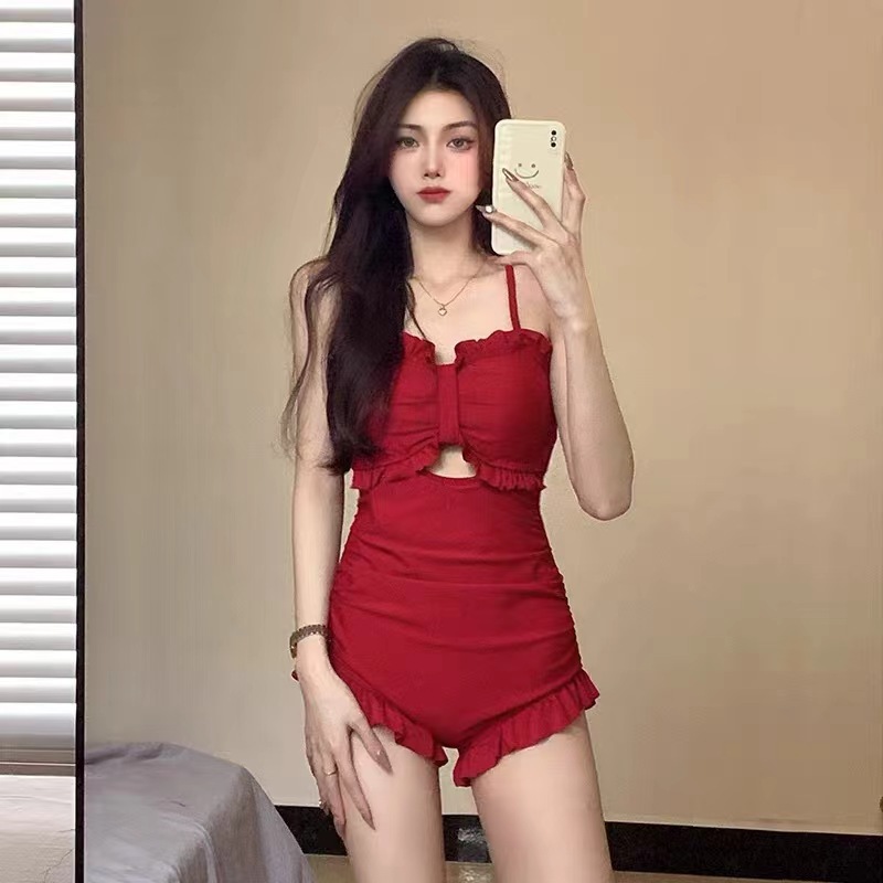 여성용 수영복 여름 2025 신상 슬림 섹시 보수적 작은 가슴 모아주는 배 가리기 슬림 원피스 온천 수영복스토어 가기