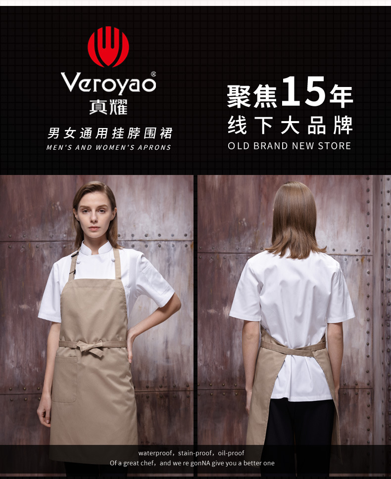 Zhenyao 호텔 셰프 앞치마 목 긴 남녀 홈 주방 요리 우유 차 가게 커피 작업복