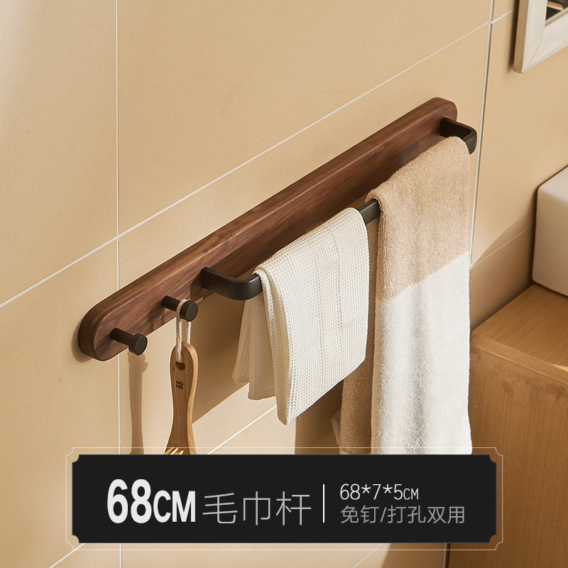 월넛 단단한 나무 타월 바 펀치 프리 벽걸이 공간 알루미늄 욕실 랙 욕실 다기능 타월 랙