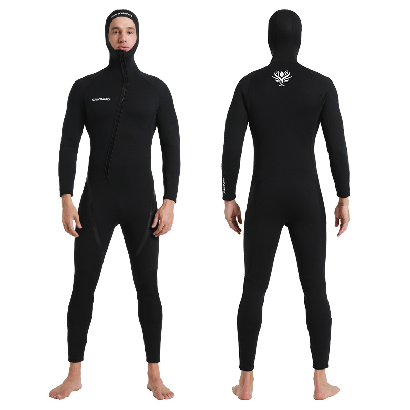 3mm 전면 지퍼 원피스 다이빙 세트 남자의 따뜻한 방한 긴팔 후드 다이빙 세트 수영 자외선 차단제 서핑 세트