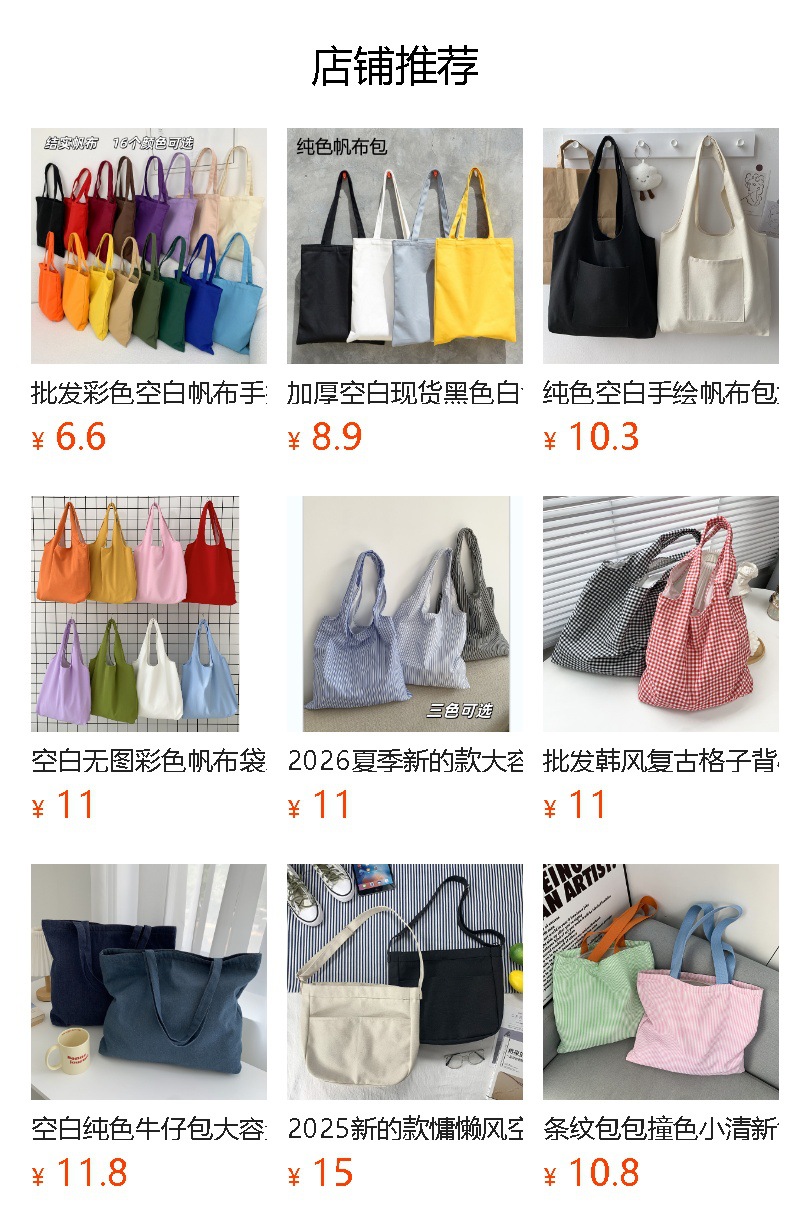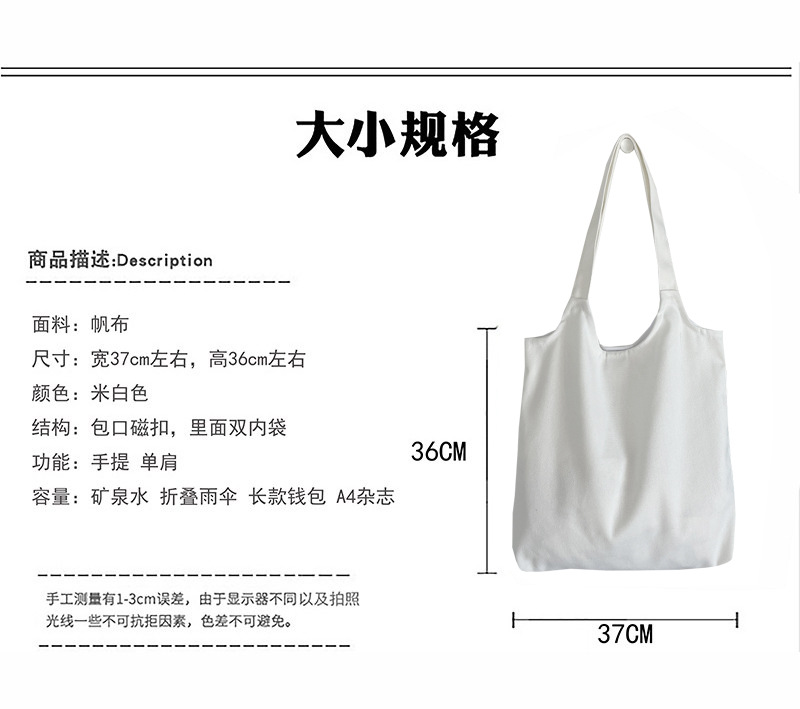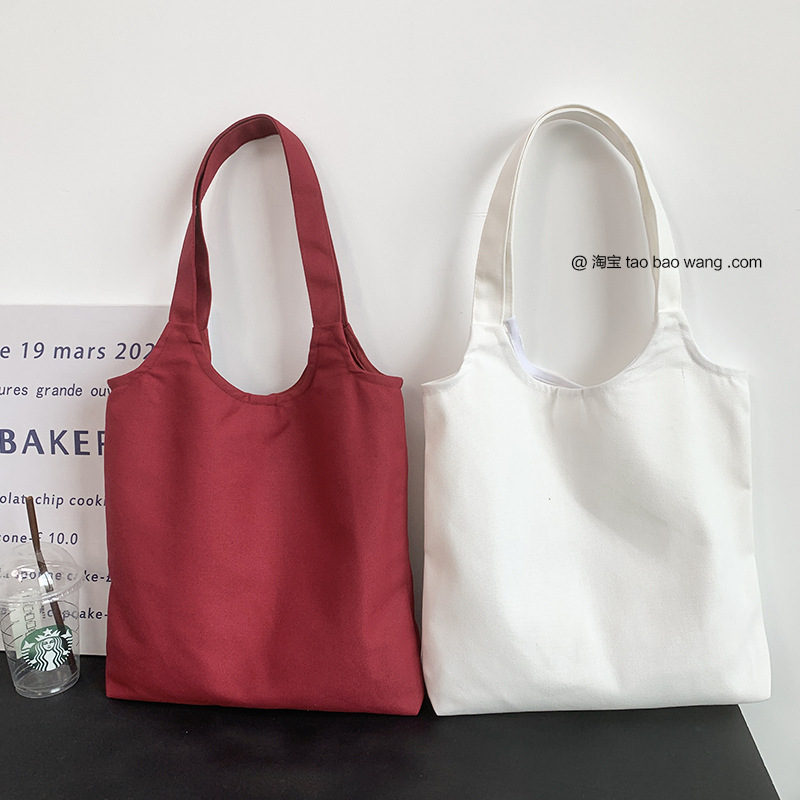 단색 캔버스 가방 손으로 그린 그림이 없는 캔버스 가방 어깨 핸드백은 로고 회사 빈 가방을 인쇄할 수 있습니다스토어 가기
