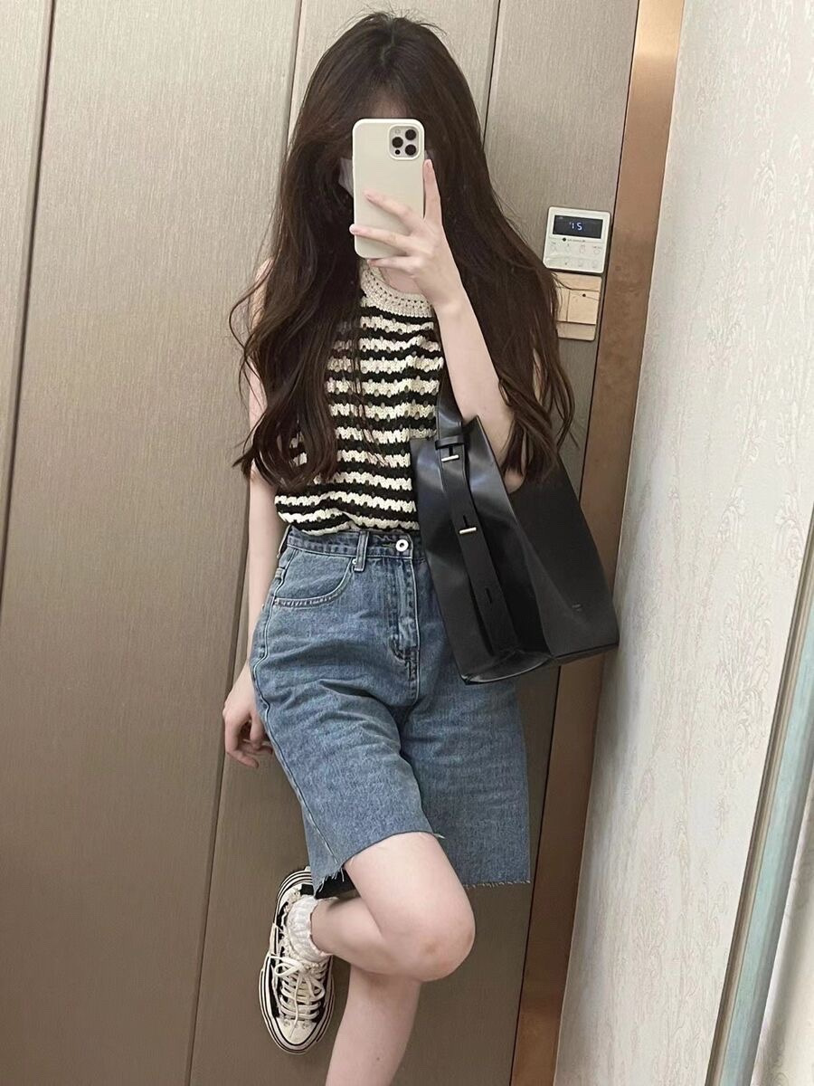 5 점 데님 반바지 여성 여름 얇은 하이 스트리트 패션 하이 웨이스트 5 점 느슨한 와이드 레그 팬츠 2024 뉴스토어 가기