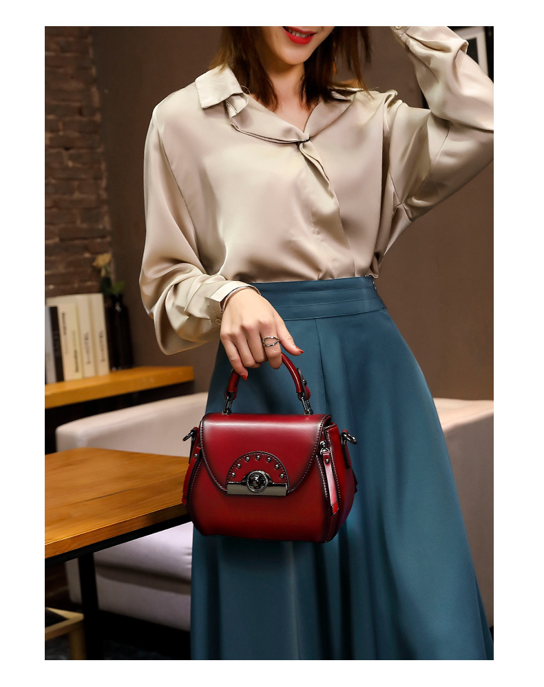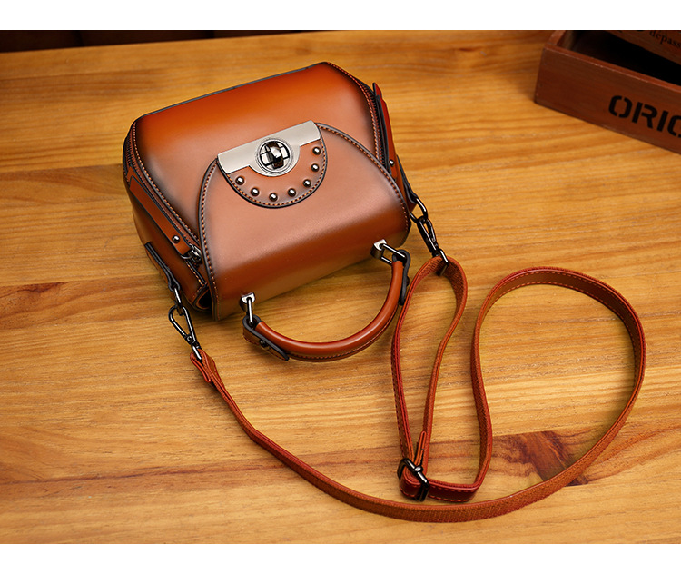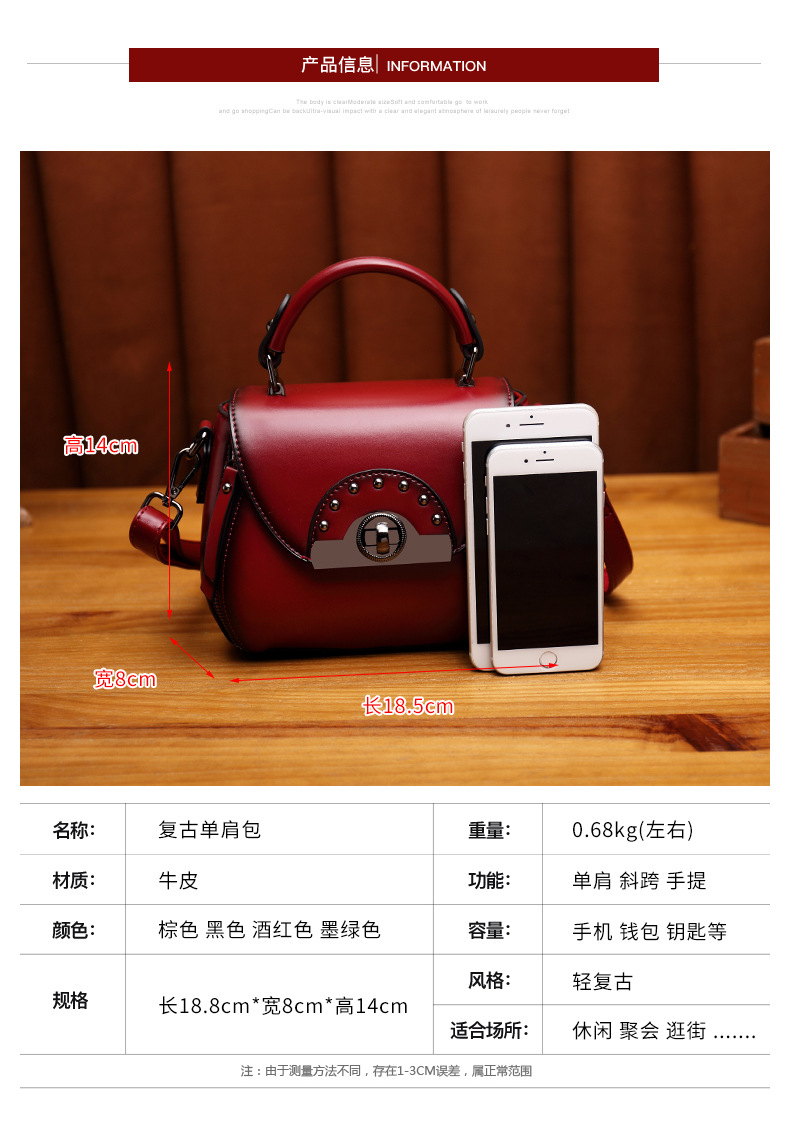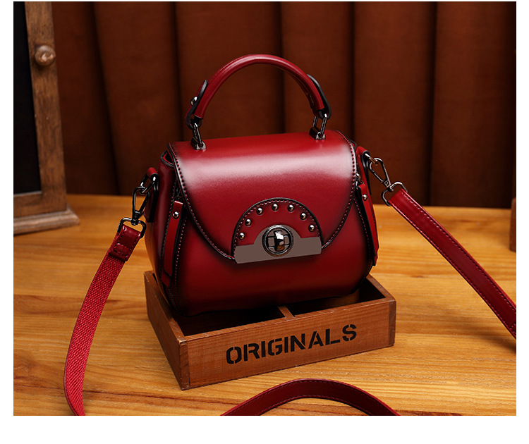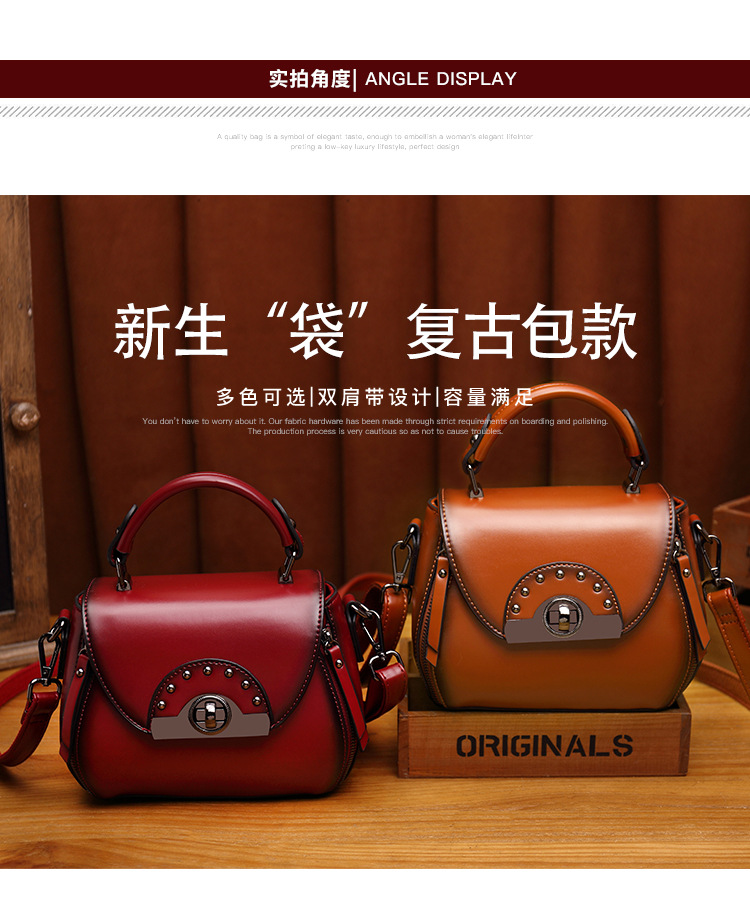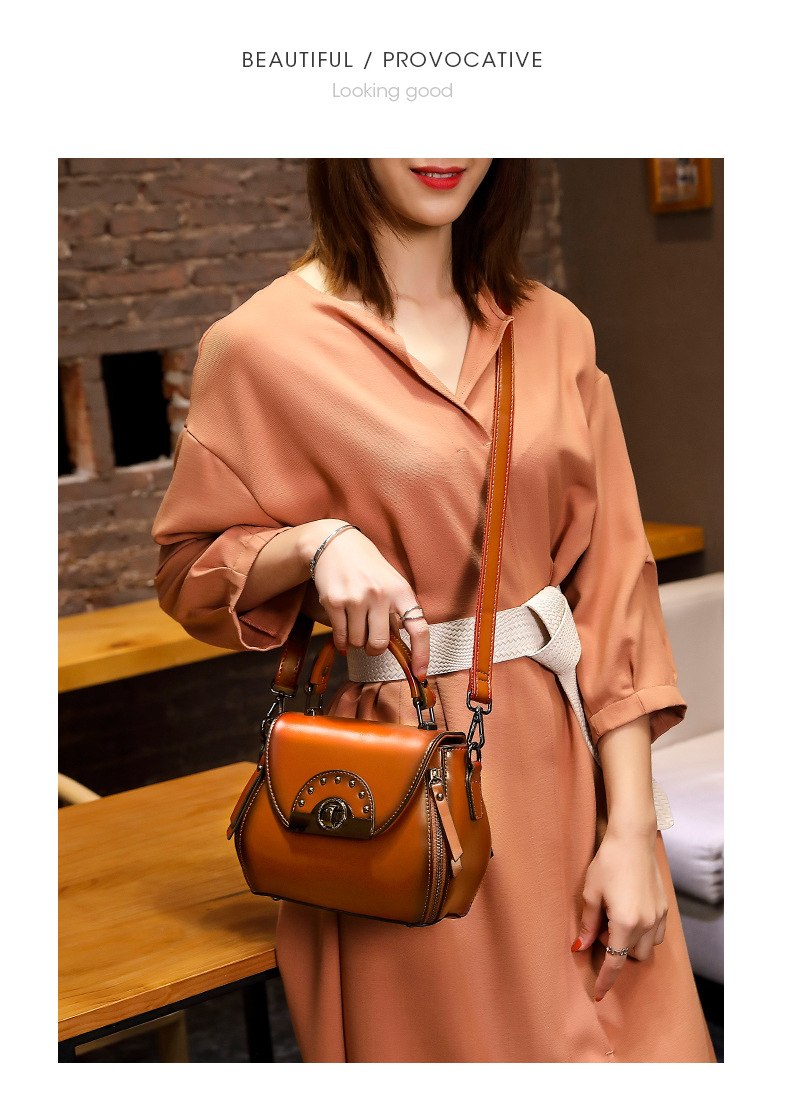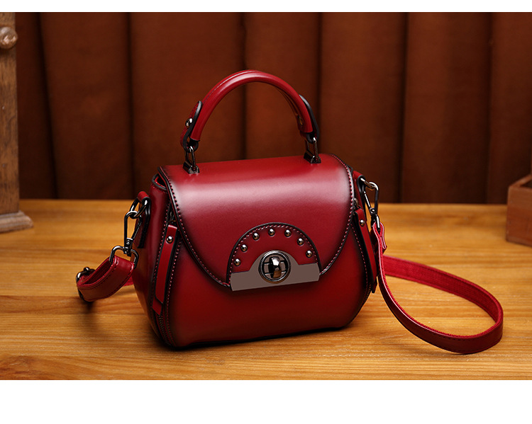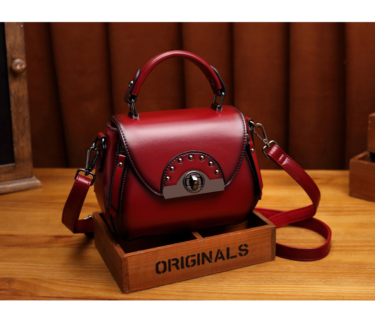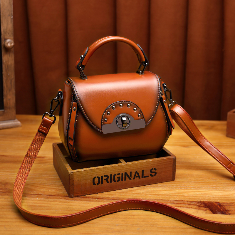 유럽과 미국의 복고풍 핸드백 여성 한국어 버전 2025 여름 새로운 오일 왁스 가죽 작은 사각형 가방 서양식 패션 원 숄더 크로스 바디