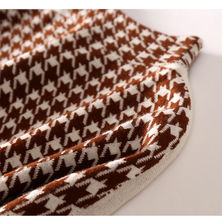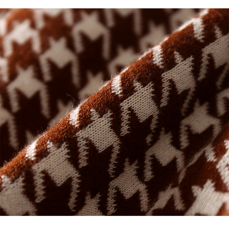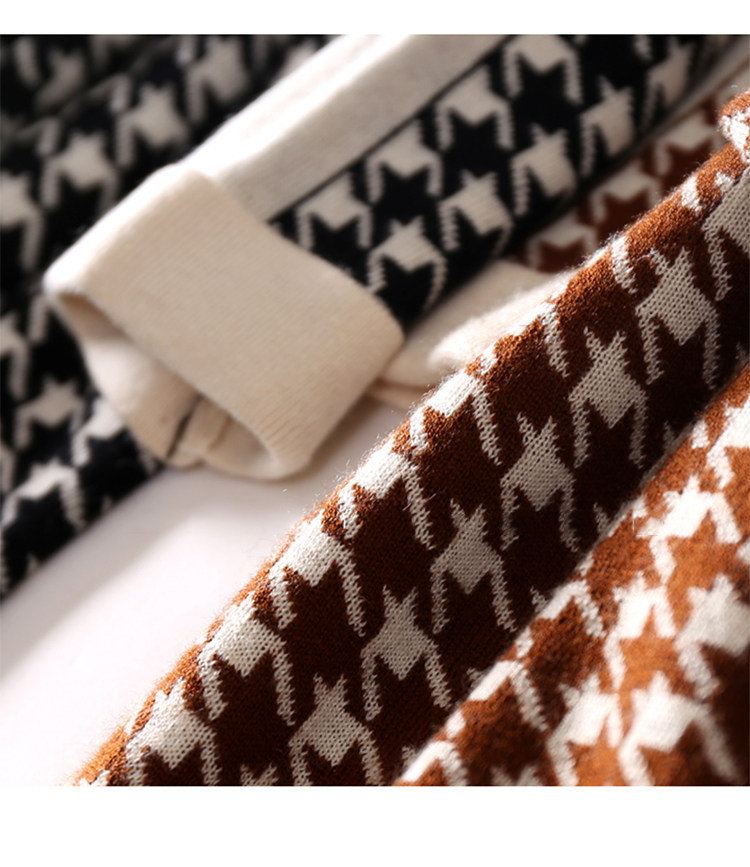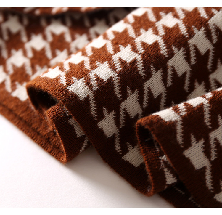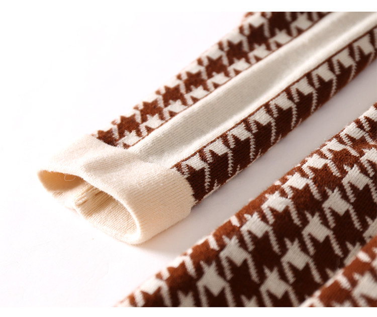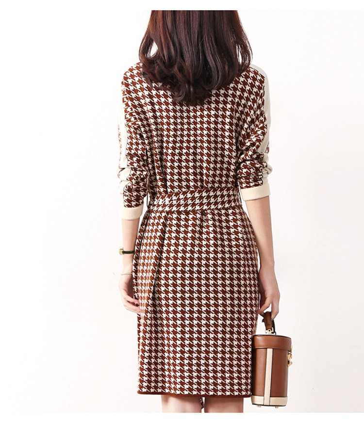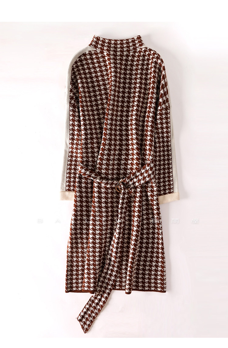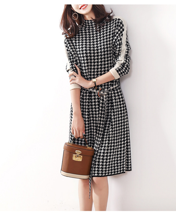 Houndstooth 니트 원피스 2022 새로운 패션 대비 색상 하프 하이 넥 레이스 A 라인 스커트 베이스 스웨터 스커트스토어 가기