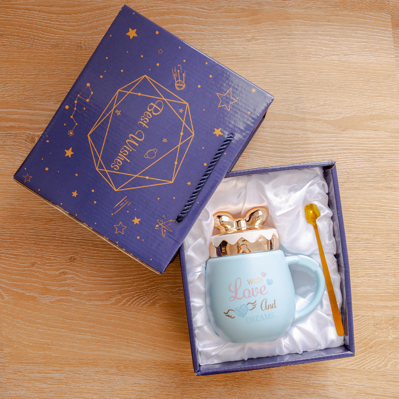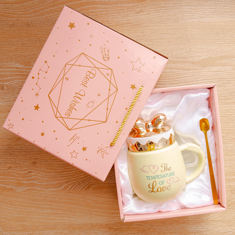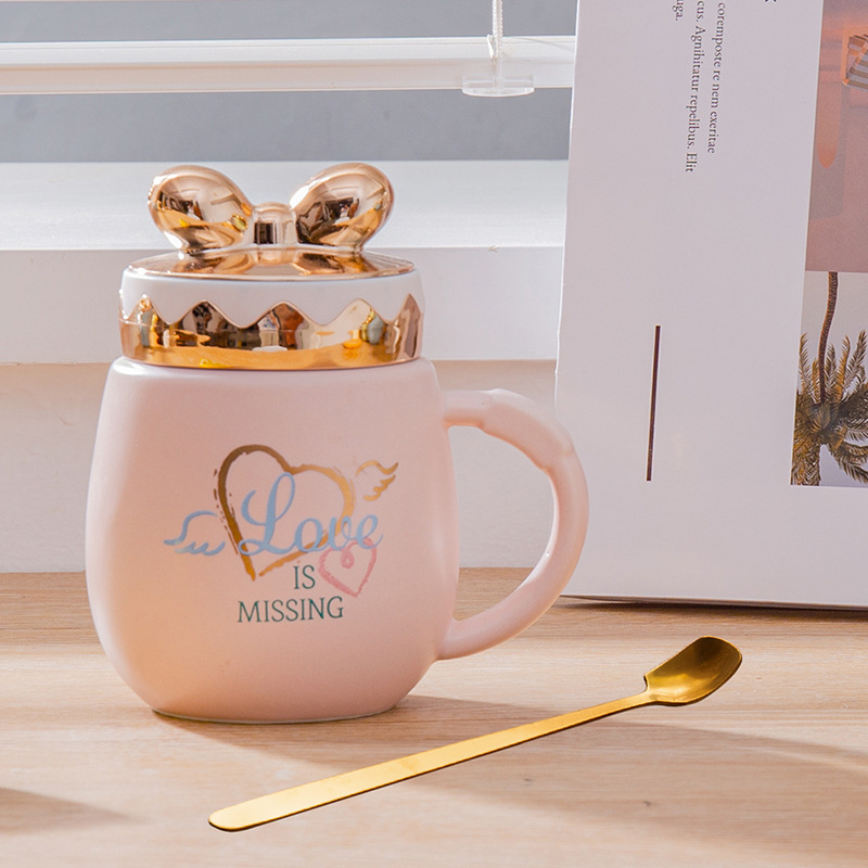 하트 모양의 날개 나비 뚜껑 선물 컵 뚜껑이있는 귀여운 만화 세라믹 머그잔 컵 지원 인쇄 LOG