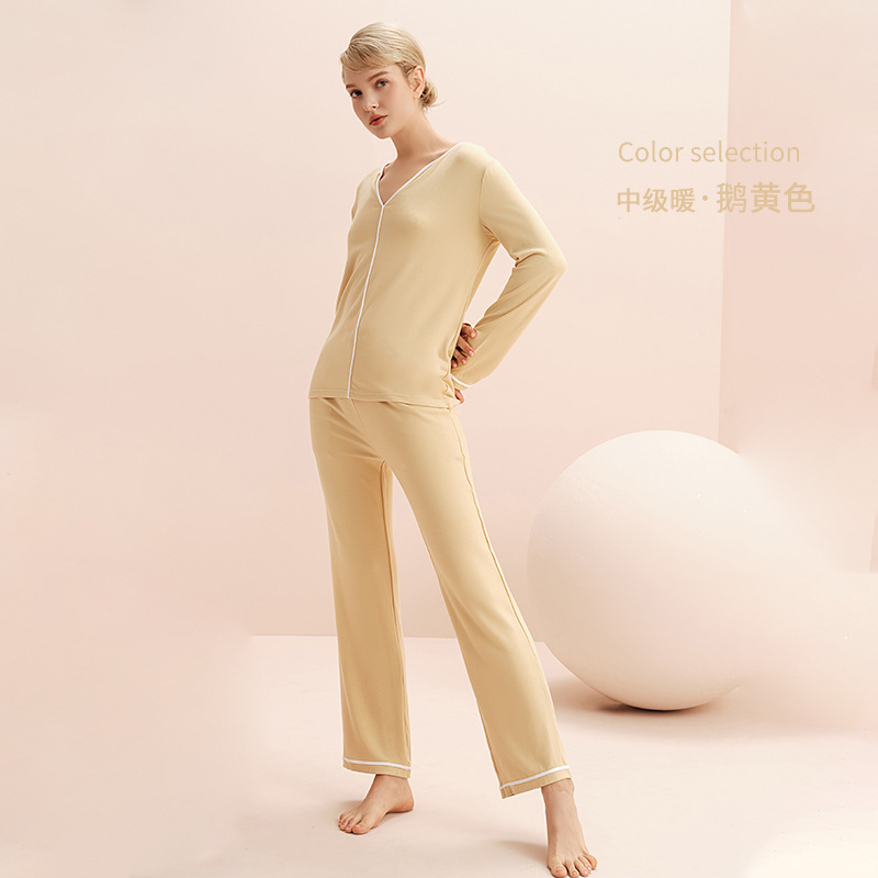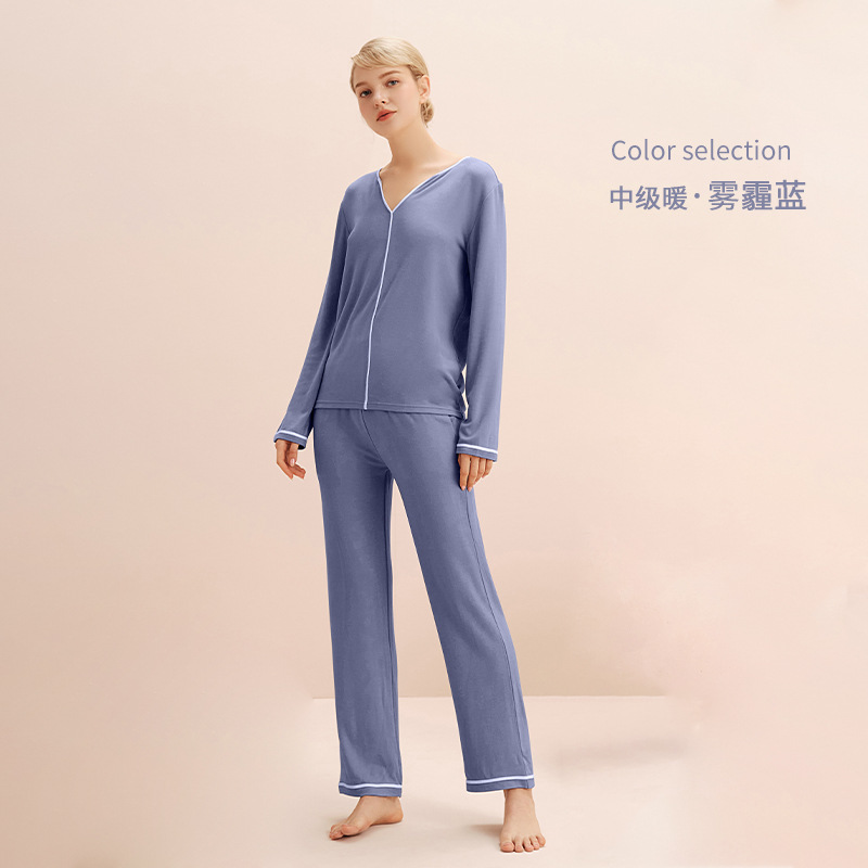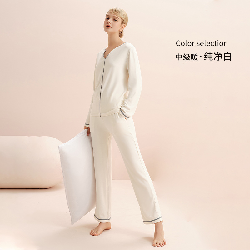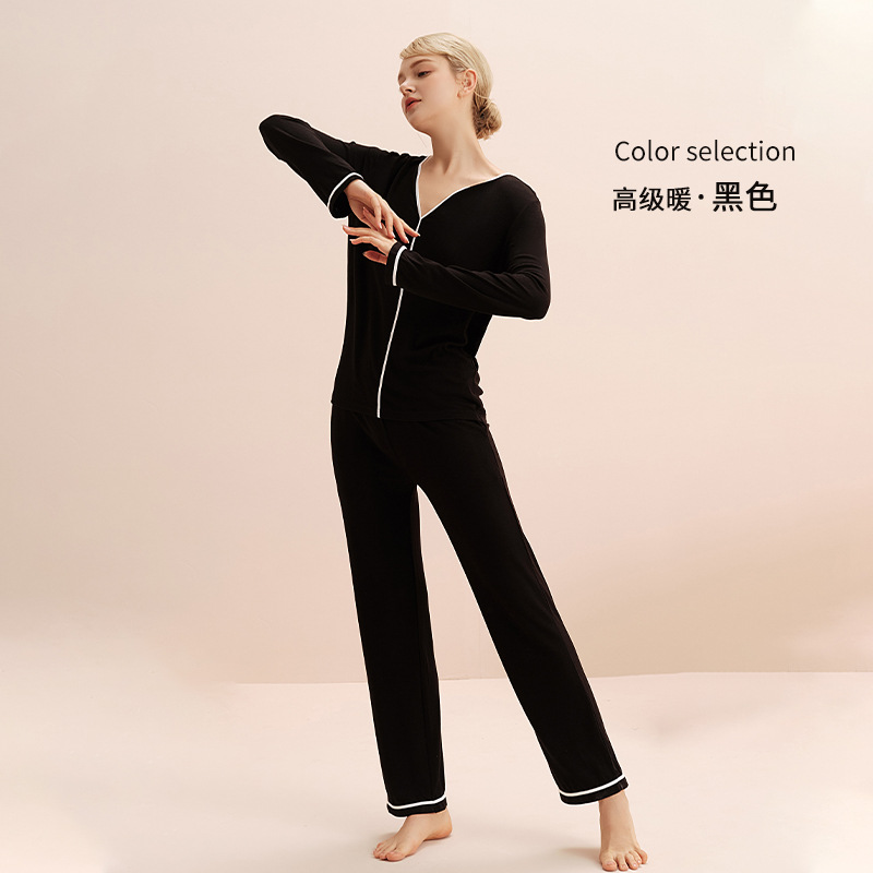 열 속옷 세트 여자의 겨울 두꺼운 긴 소매 가정 옷 간단하고 편안한 스크럽 벨벳 따뜻한 잠옷 두 조각스토어 가기