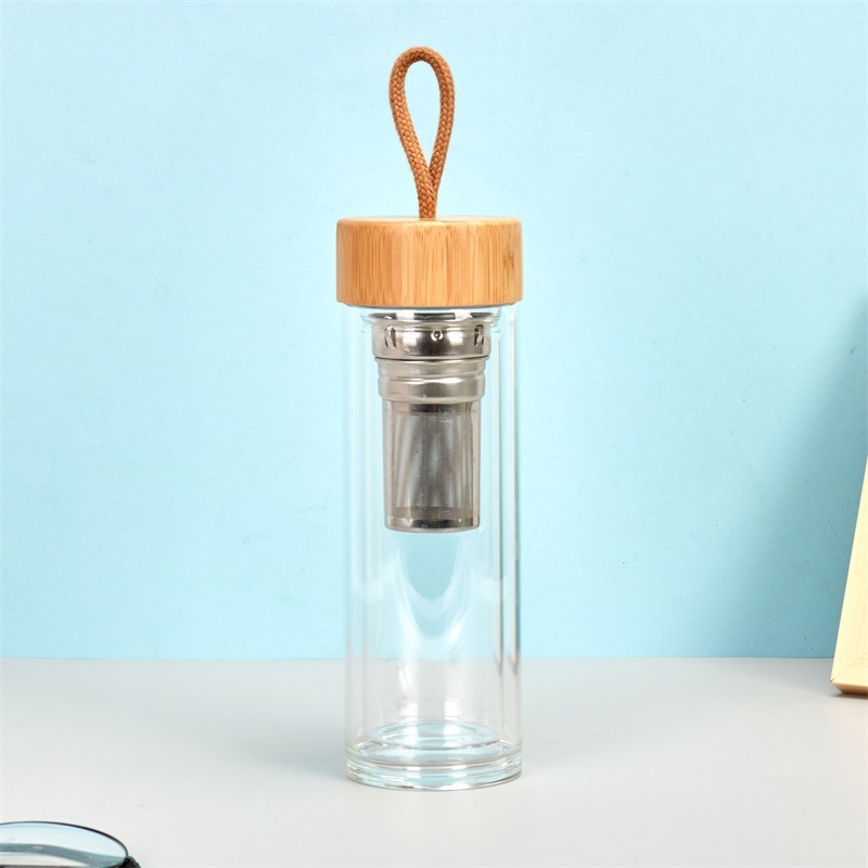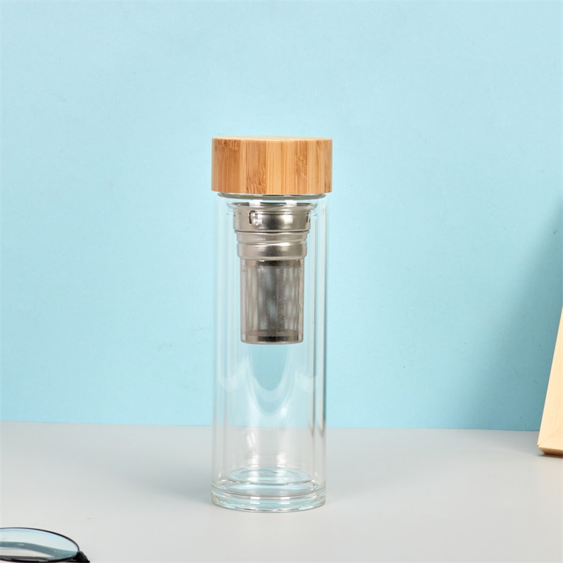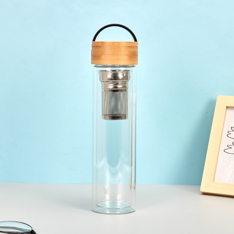새로운 더블 레이어 대나무 커버 유리 비즈니스 간단한 스트레이트 컵 대용량 붕규산염 가정용 물 컵