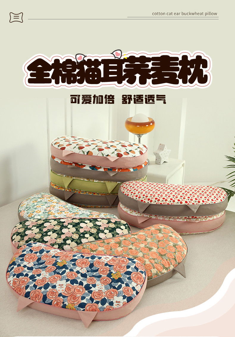 새로운 메밀 고양이 귀 베개 고양이 배 베개 풀 메밀 껍질 베개 자궁 경부 베개 떨림 라이브 폭발 도매스토어 가기