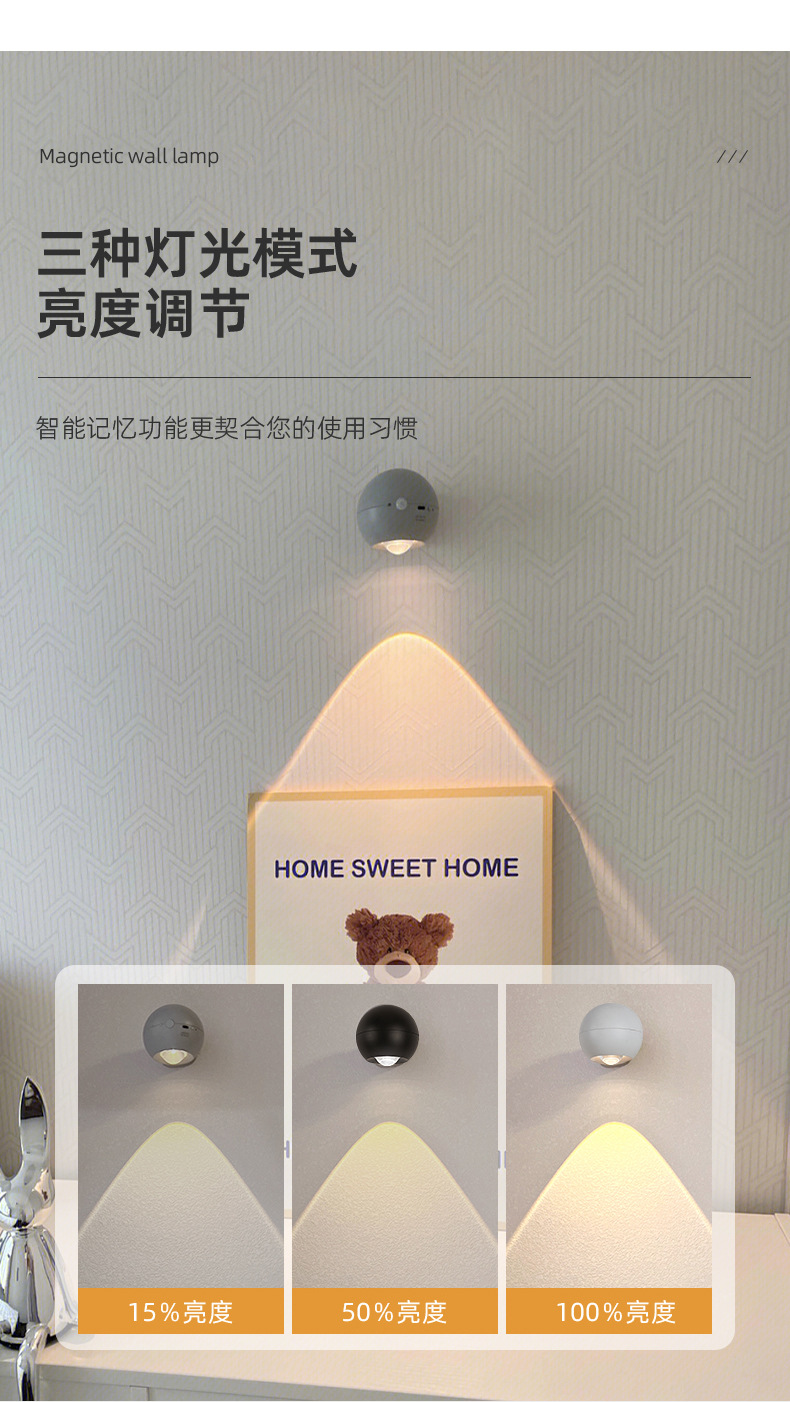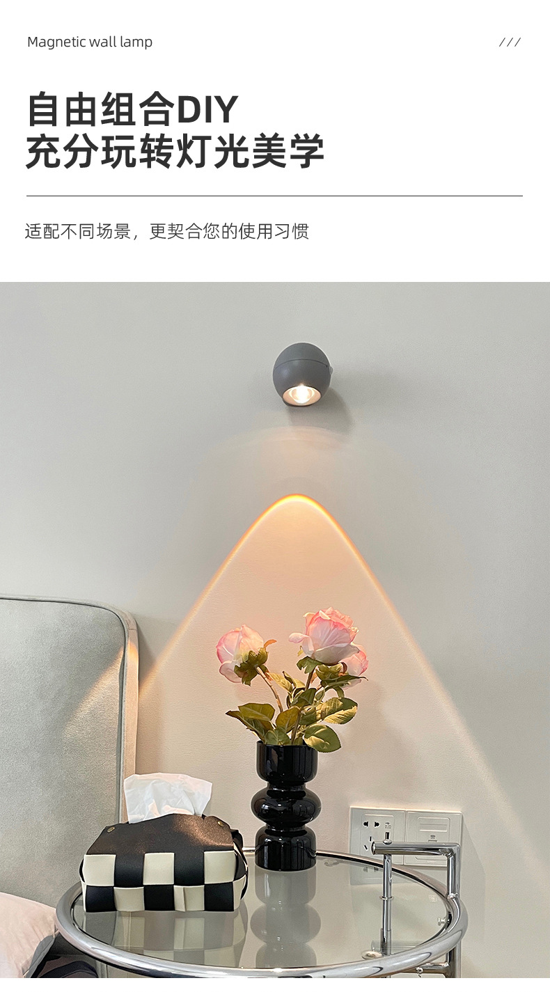 무배선 벽 램프 충전식 침대 옆 램프 배선 없음 침실 새로운 눈 보호 조명 럭셔리 크리에이티브 장식 배경 벽 램프스토어 가기