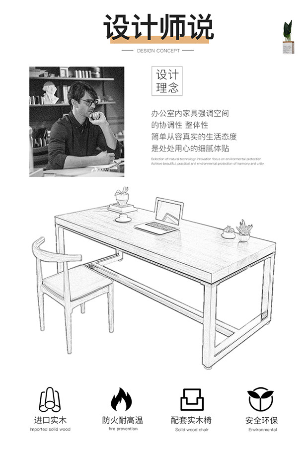 미국식 로프트 원목 책상, 심플하고 모던한 데스크탑 컴퓨터 책상, 원목 책상, 긴 책상
