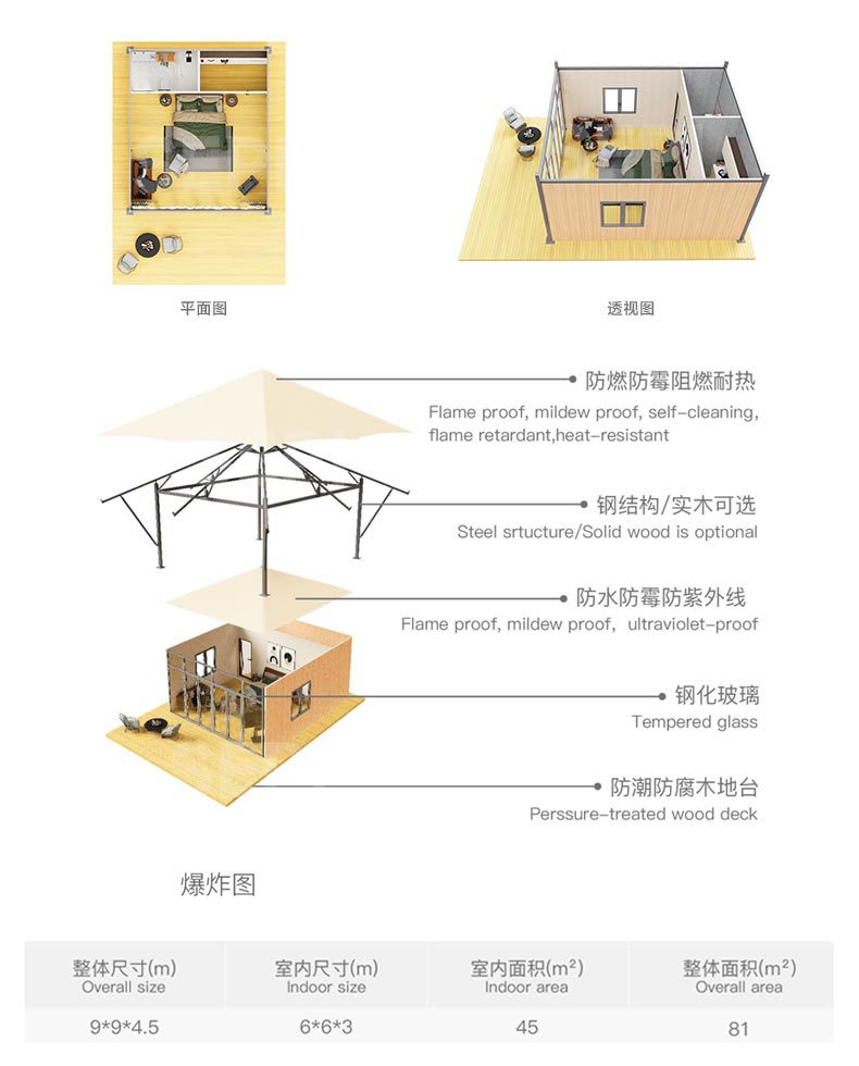 사각형 호텔 텐트 야외 캠핑 인기 있는 농가 숙소 야외 캔버스 여행 텐트 방수
