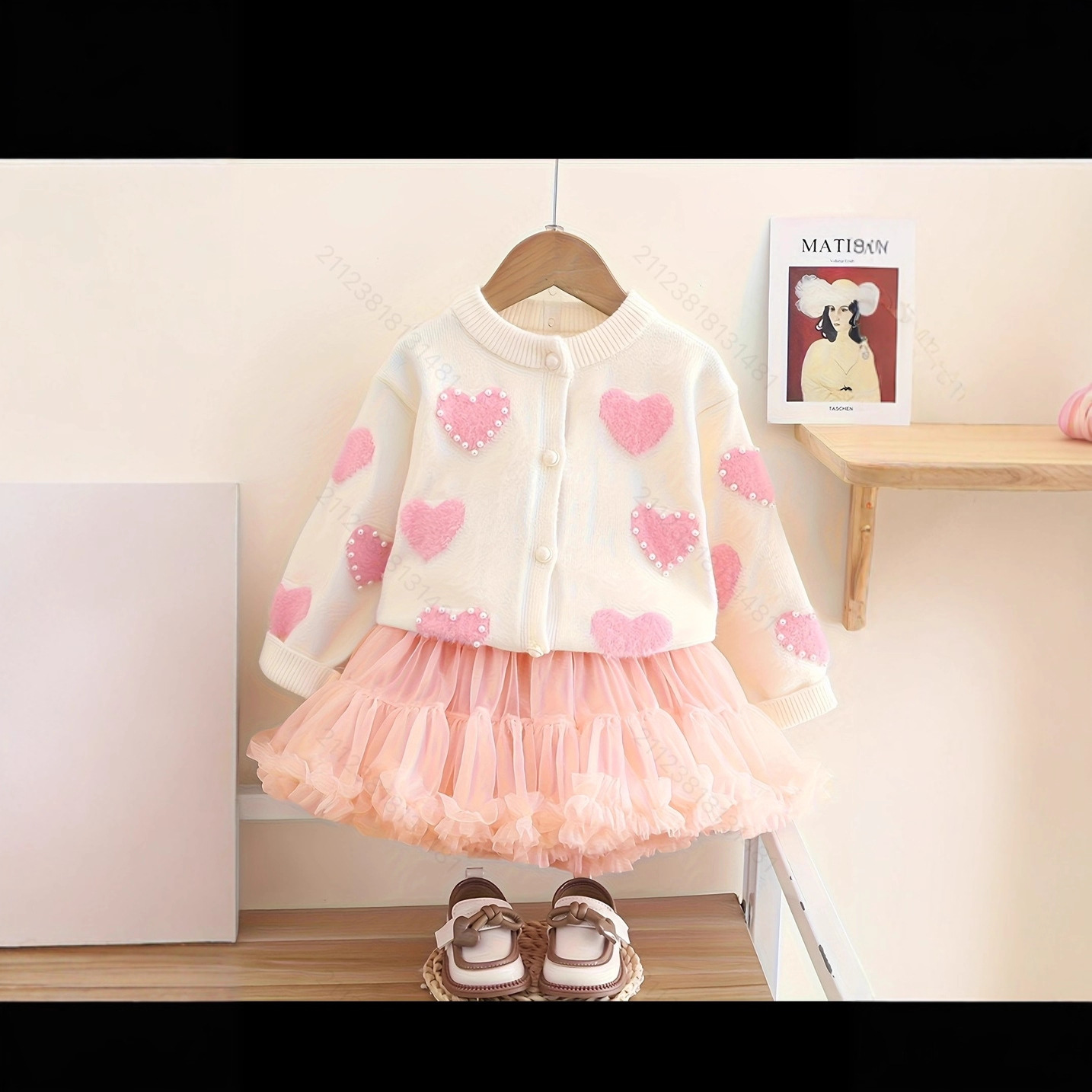 여아용 스웨터 니트웨어 2022 신상 여아용 진주 하트 풀오버 가디건 스위트 프린세스 패션 탑스토어 가기