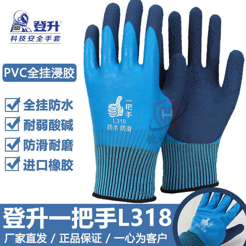 Dengsheng 최초의 L318 담근 고무 장갑 남성용 전체 교수형 두꺼운 전체 교수형 고무 방수, 내유성 및 미끄럼 방지 작업 현장