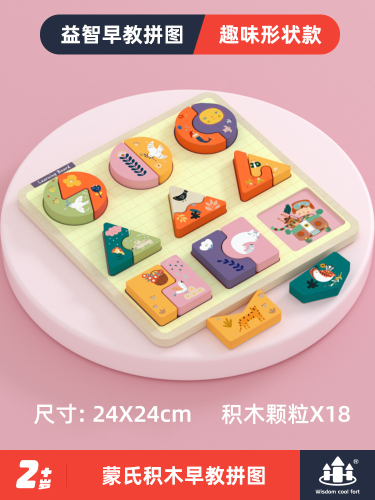 몬테소리 유아기 퍼즐 빌딩 블록 휴대용 보드 아기 어린이 모양 매칭 패널 1-2 세 반 3 아기 교육 완구스토어 가기