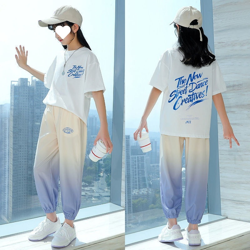 여아 점진적 변화 스포츠 세트 2022 여름 새로운 유행 타이 다이 할로윈 바지 프린트 티셔츠 캐주얼 투피스 세트