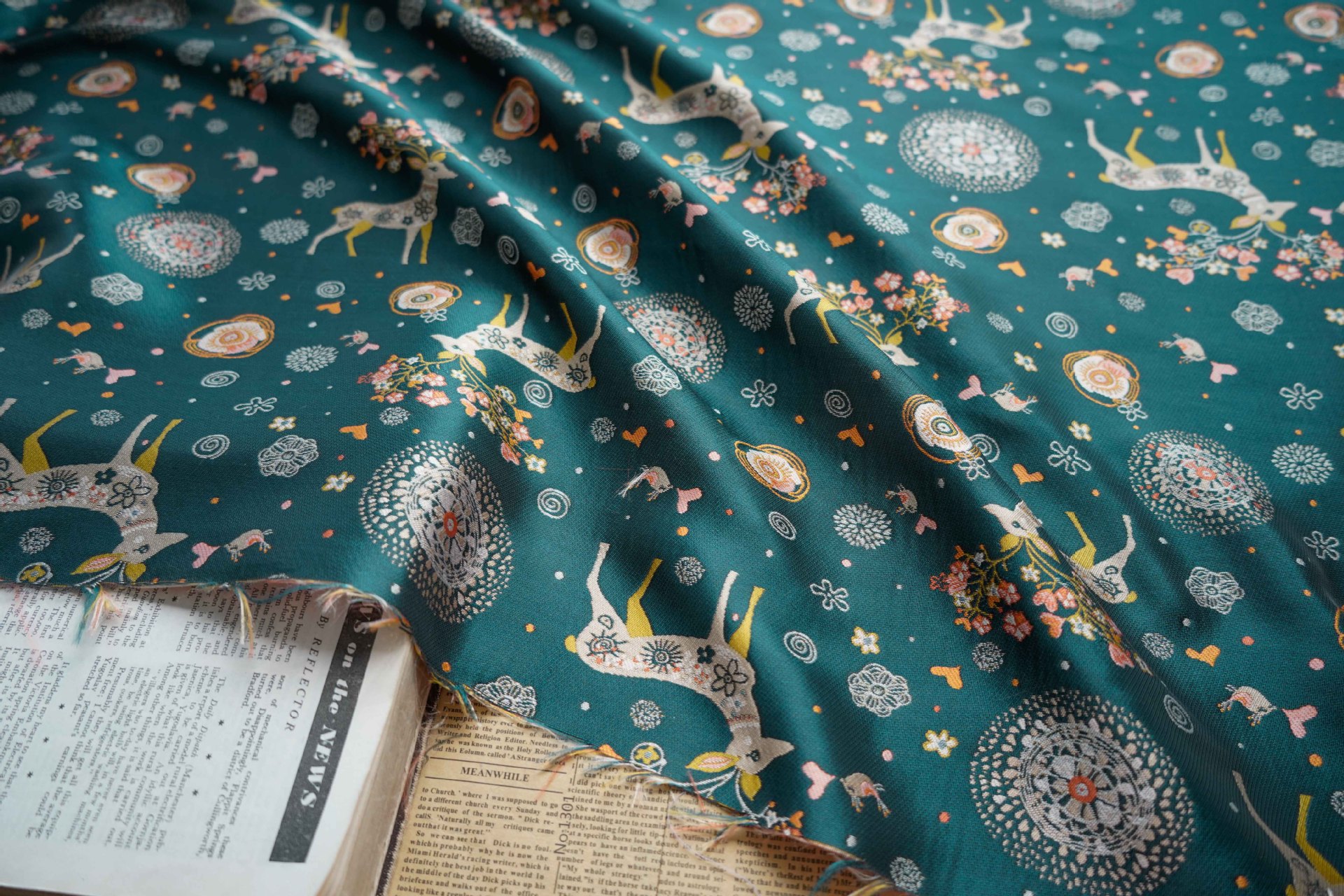 다크 그린 새끼 사슴 원사 염색 자카드 원단 여성 의류 가을과 겨울 유화 감각 원피스 크리스마스 옷 꽃 꽃다발 장식 직물스토어 가기